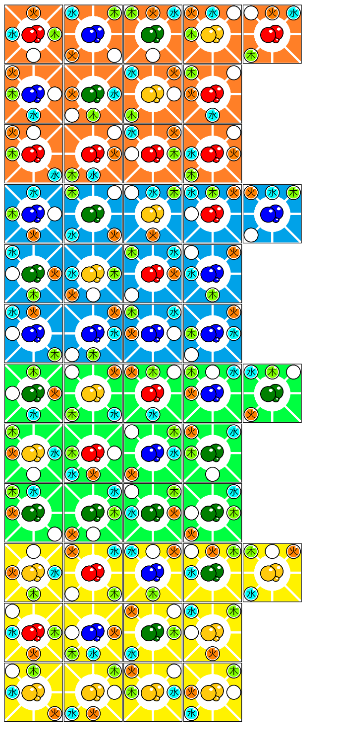 Minden lapon minden támadásból csak egy van. A támadások között van egy fehér amit semmi nem üt át. A fehér mindentől véd, nem üti át a tűz, víz, fa, sem önmaga. Viszont nem is tud átütni semmit. Ez egy abszolút pajzsként szolgál. A fehér támadó ponton keresztül nem lehet megtámadni a lapot. A fehér támadó ponttal csak a védtelen oldalakon keresztül tud támadást bevinni egy másik lapnak.