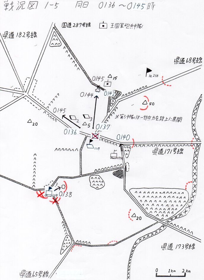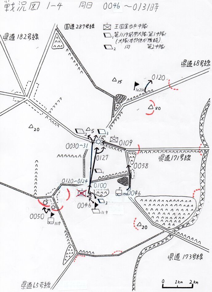 彼は図上の一点――東から伸びる県道171号線と、北から西に曲線をえがく同68号線からなる三叉路を凝視した。68号線沿いに北上すると小高い丘がひとつあり、そこには敵の歩兵大隊が陣取っている。予定通りなら友軍が、陽動攻撃を実施中のはずだ。事前に得た情報によれば、171号線上にも中隊規模の警戒部隊が存在する。