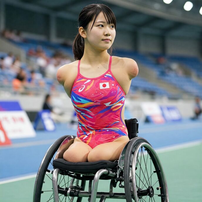 スタート台のないそのコースの端に、彼女は車椅子のまま静かに近づいていった。