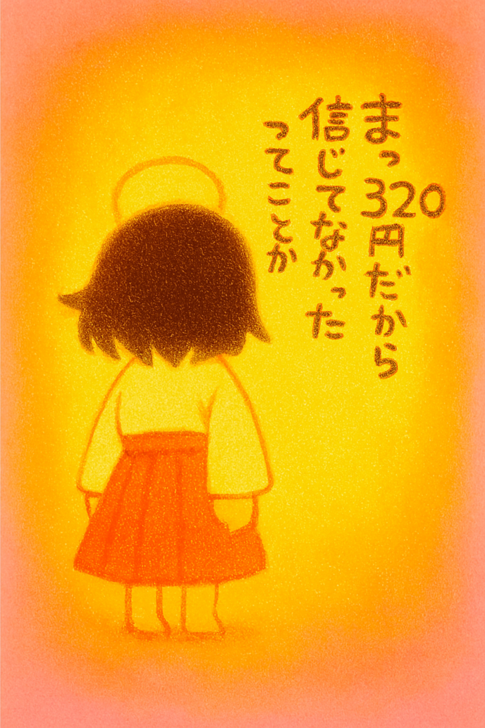 まっ渡された賽銭も320円だったから、信じてなかったってことか」