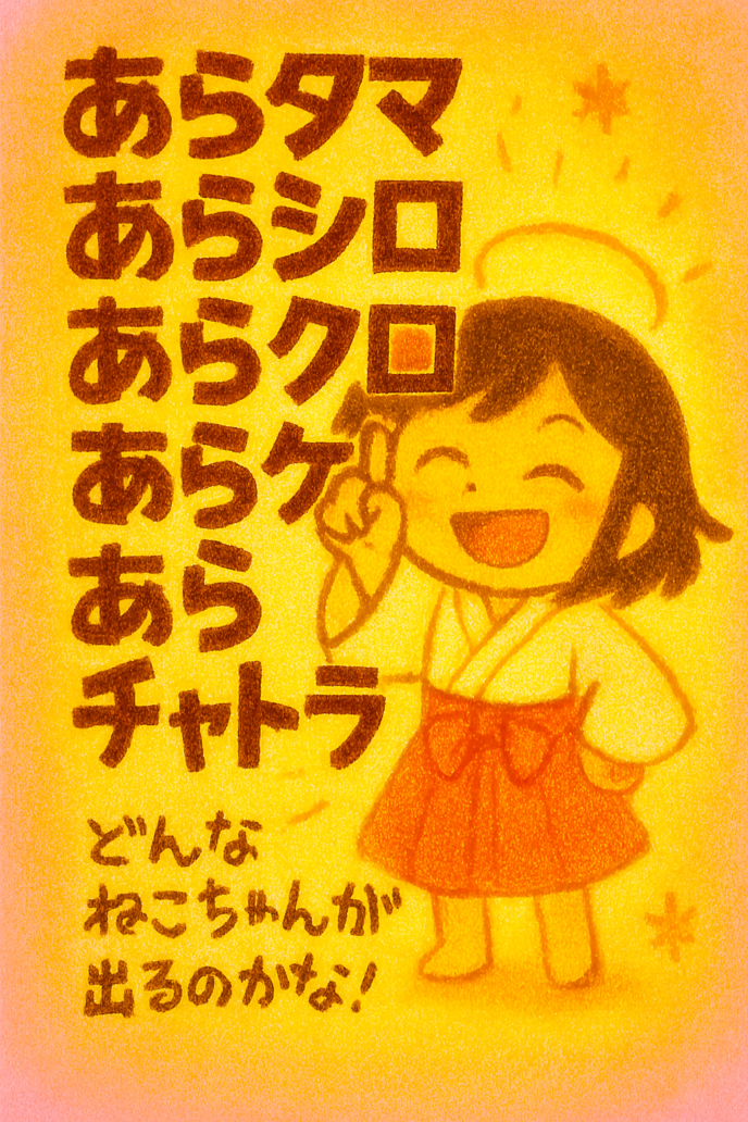 「あらタマ、あらシロ。あらクロ、あらミケ。あらチャトラ」