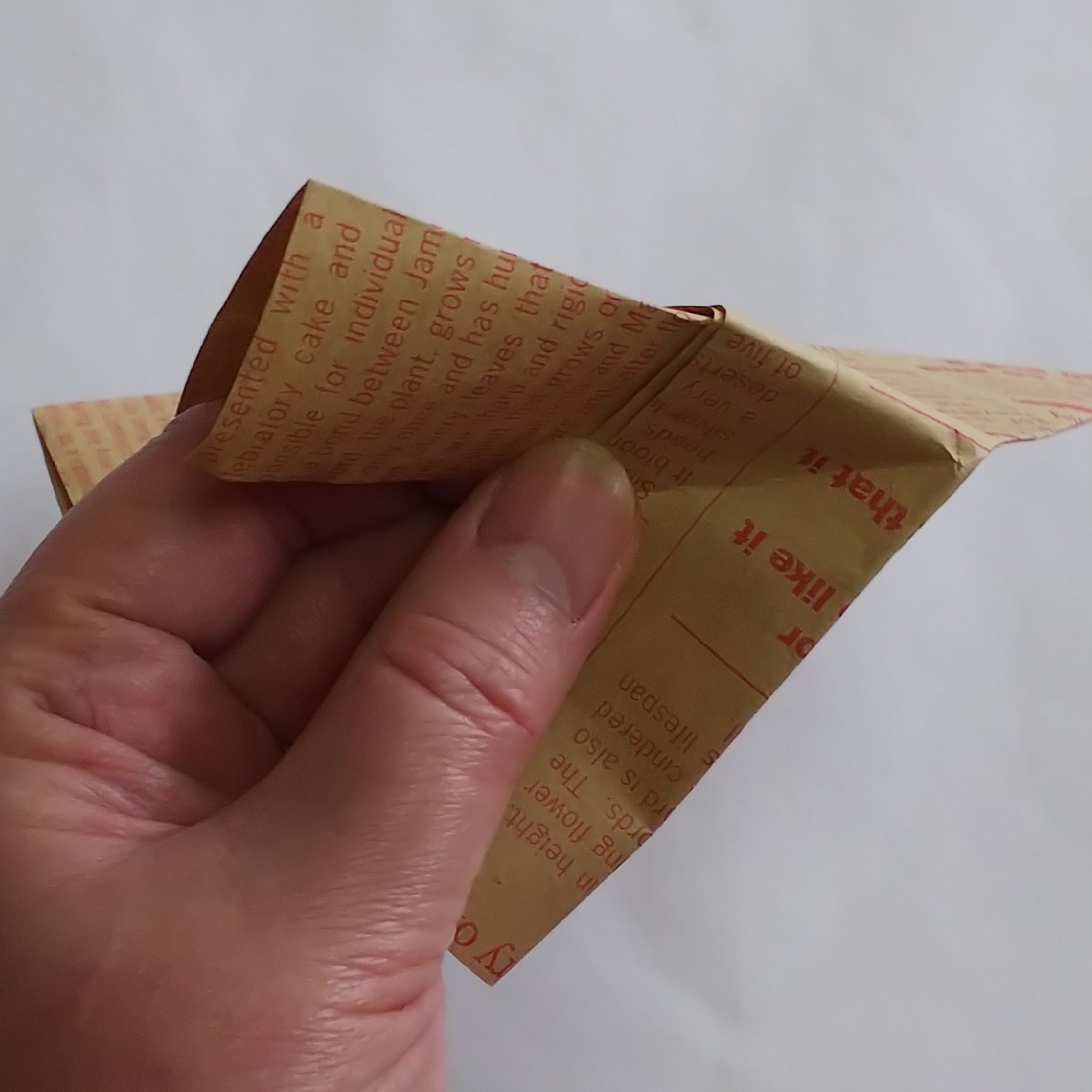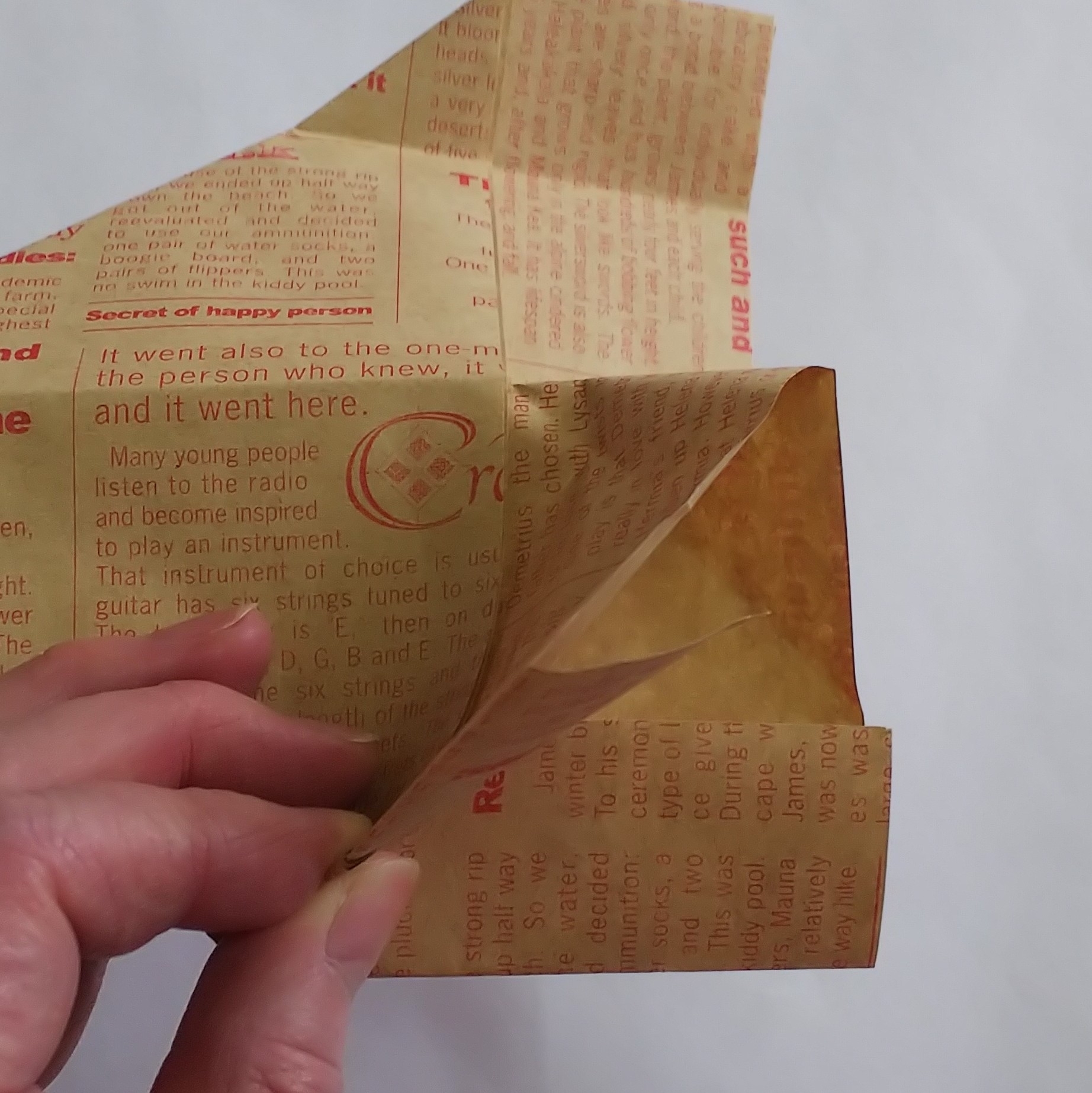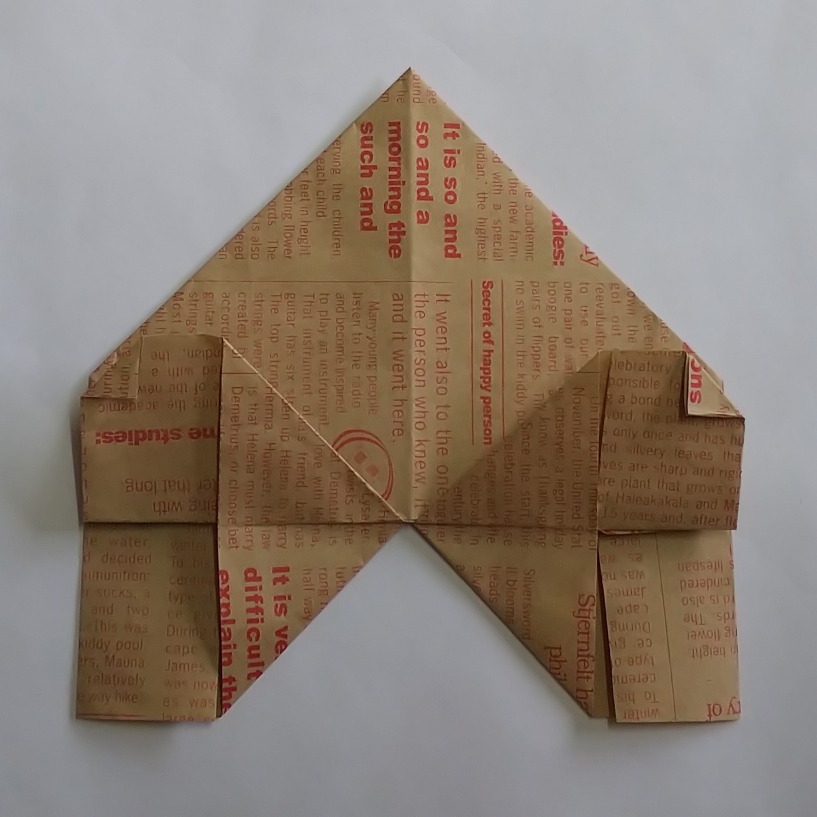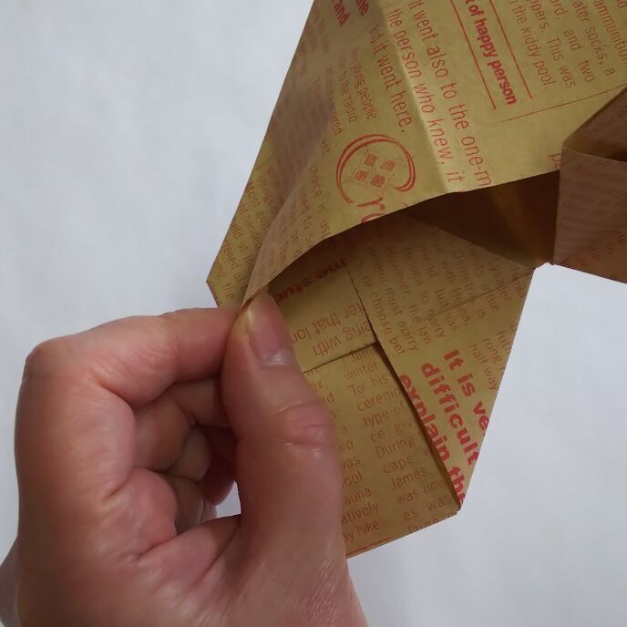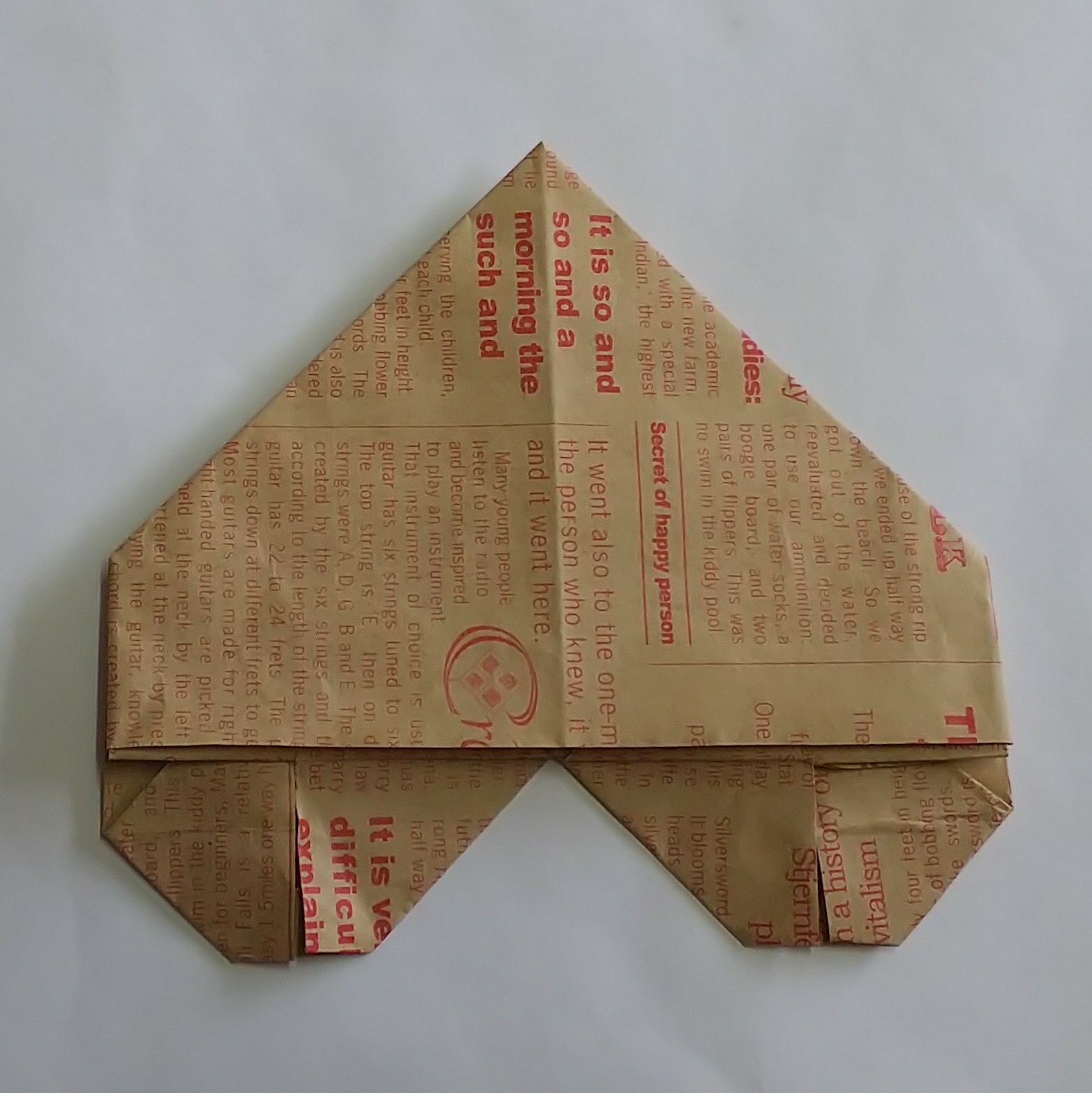 反対側の上半分も、下の写真のように開き、同じように内側に入れ込みます。