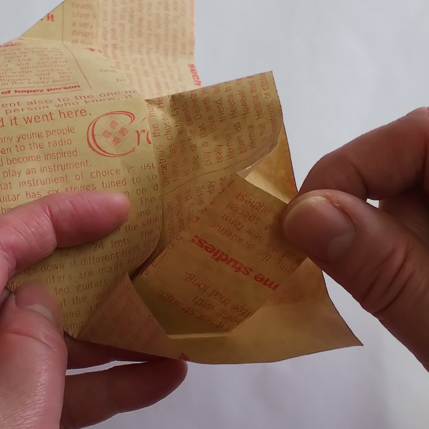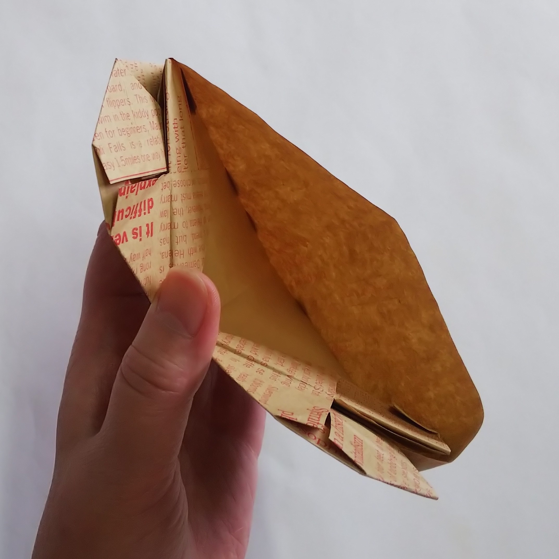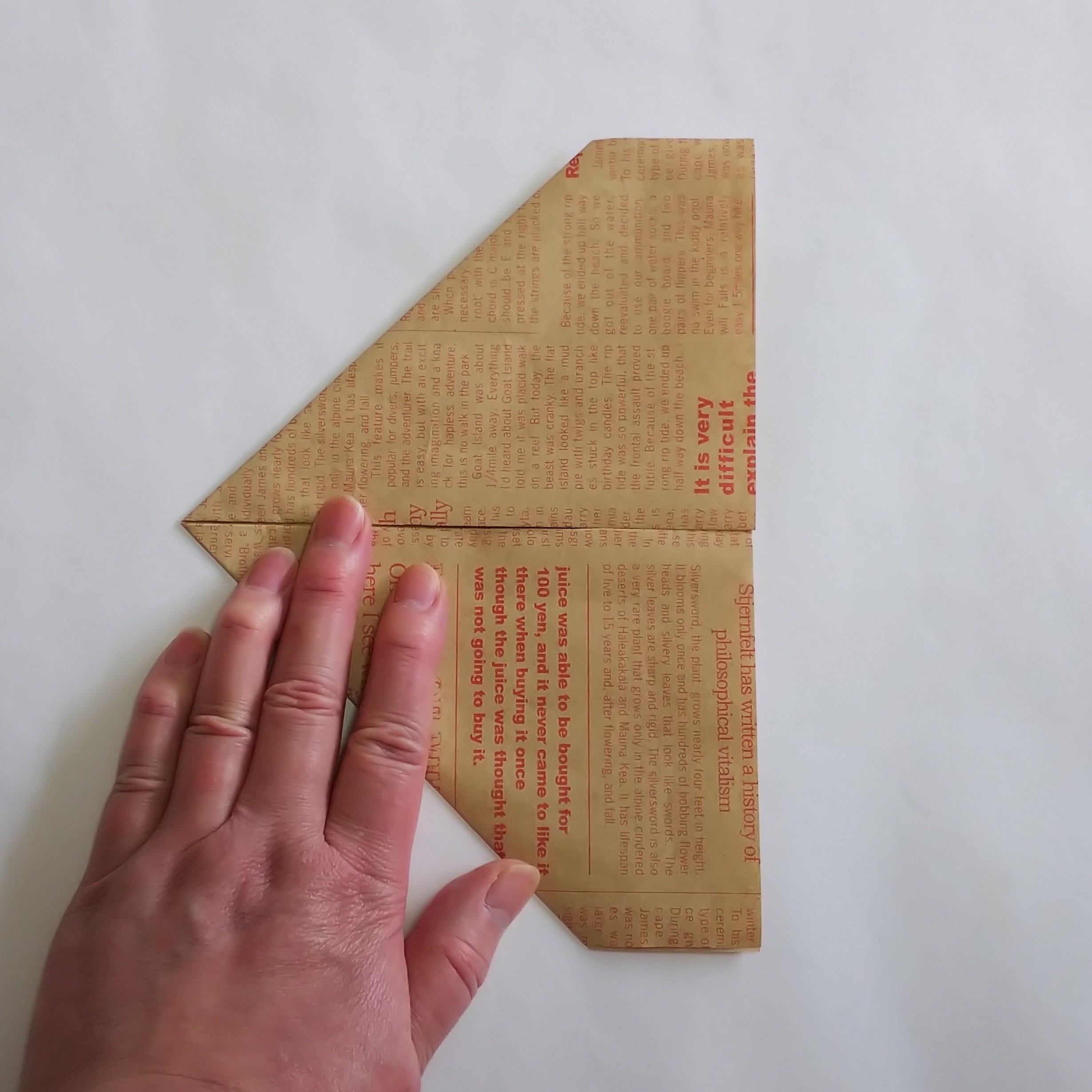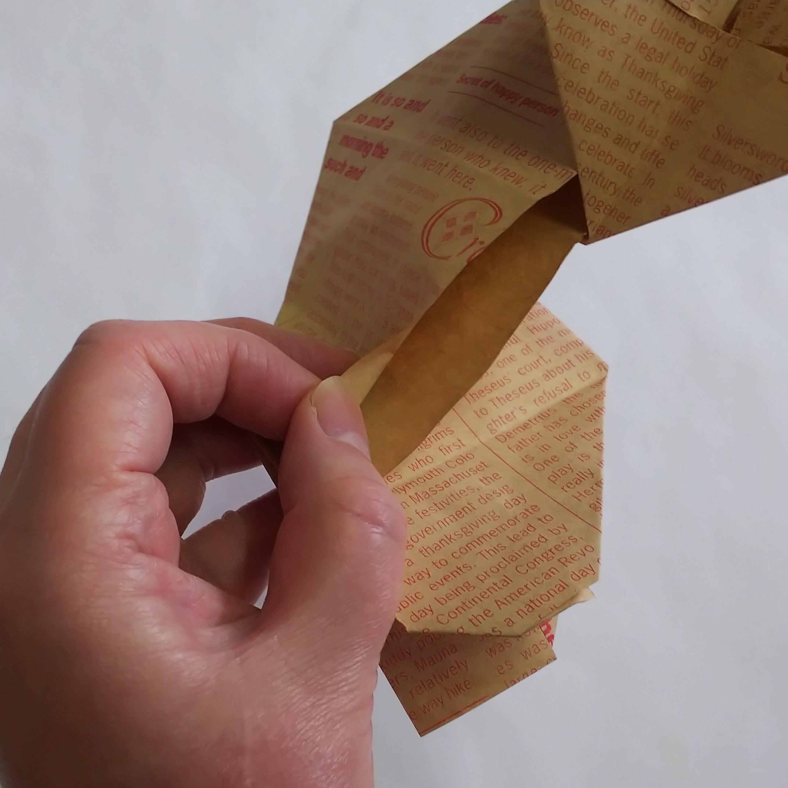 反対側の上半分も、下の写真のように開き、同じように内側に入れ込みます。