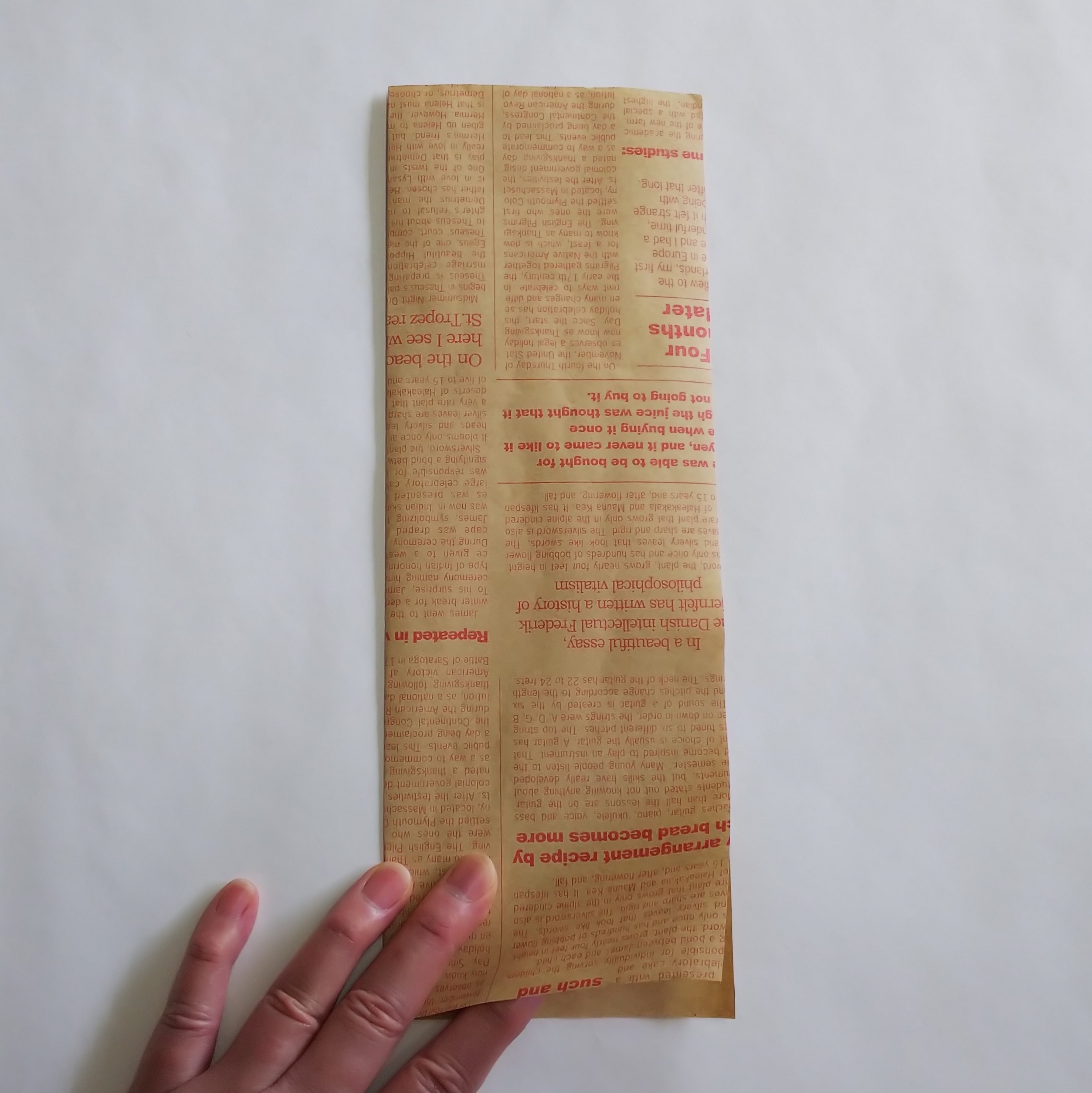 ・A4サイズの紙(コピー用紙、カラーコピー用紙、包装紙、A4サイズのチラシなどで作れます。この作りかた紹介では、包装紙をA4サイズに切り取った紙を使用しています。)