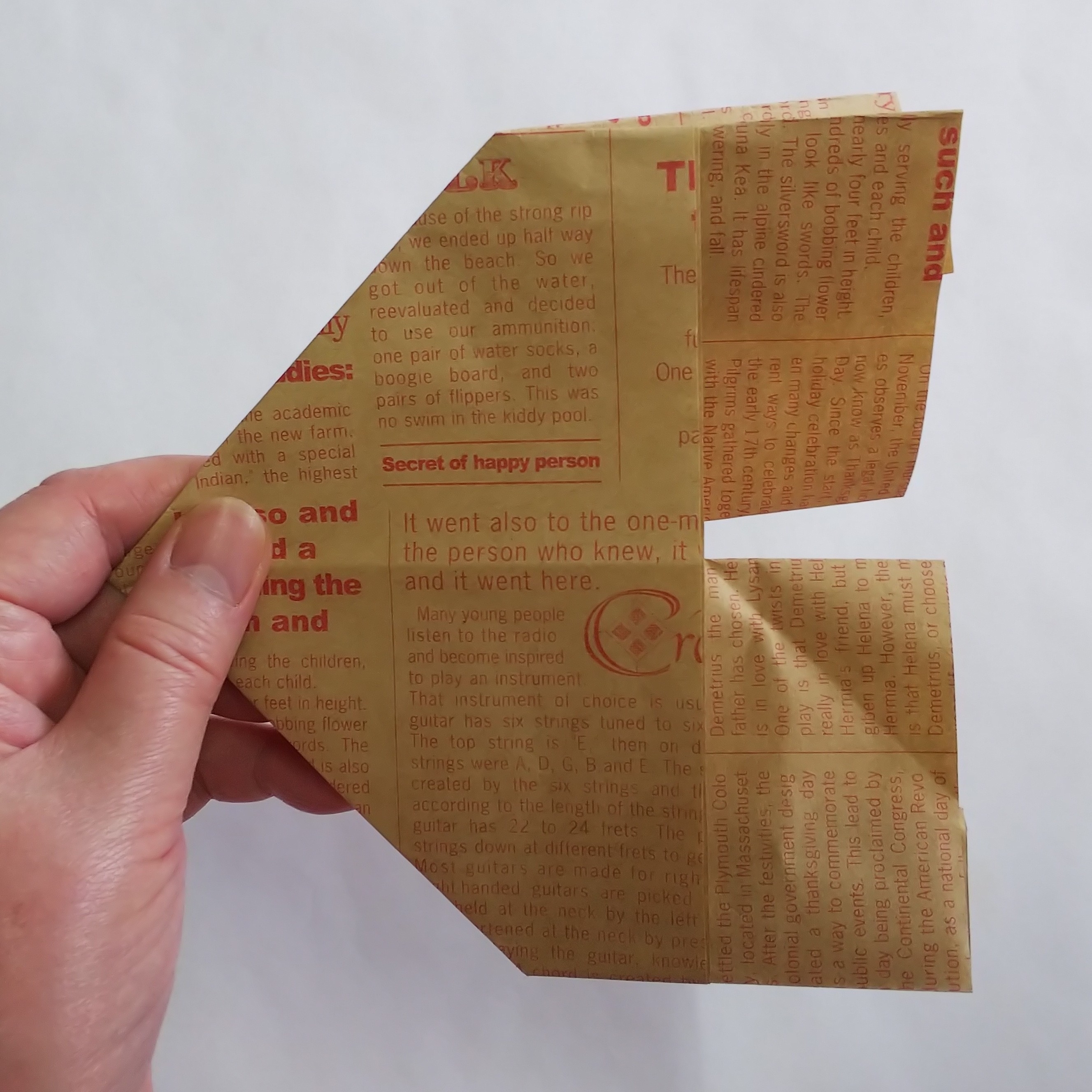 いちばん上の紙と、上からにまいめの紙の間がポケットのようになっているので、ここに10.で折った部分を差し込みます。