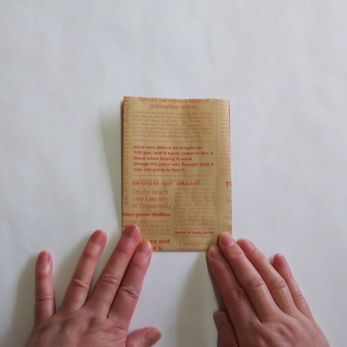 しおりを挟むA4の紙を折るだけで、手のひらサイズのペーパーバックが作れます。