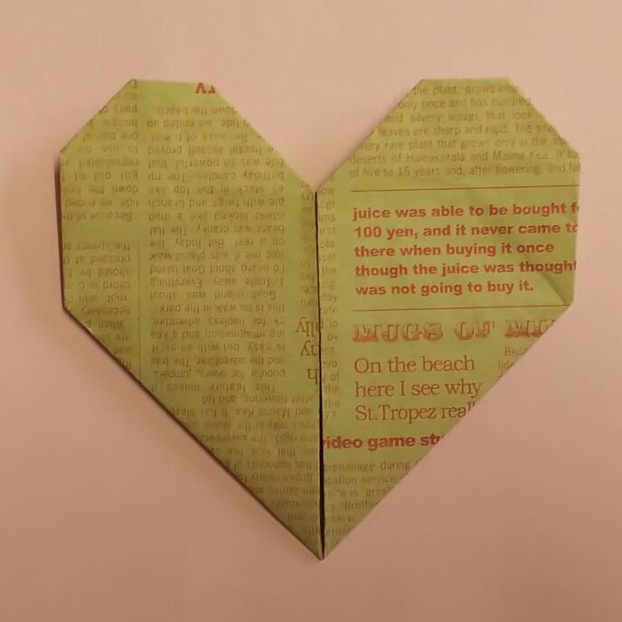 ハートの形の頂点が、横を向くように紙を置き換えます。