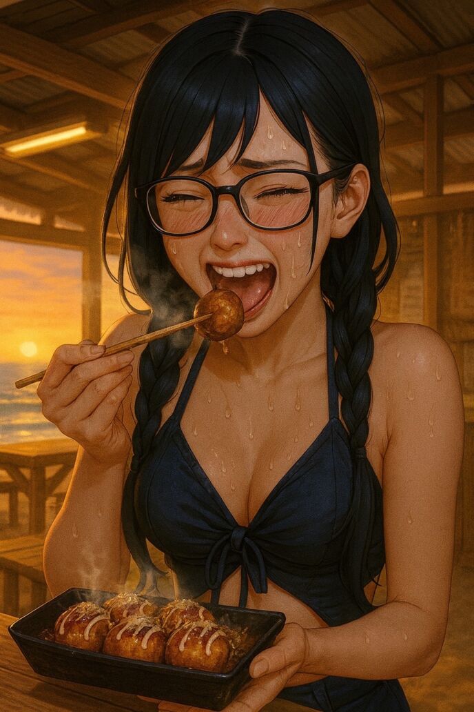 海の家にはたこ焼き用鉄板も備えてあったので、手早くくるくると焼いてゆく。