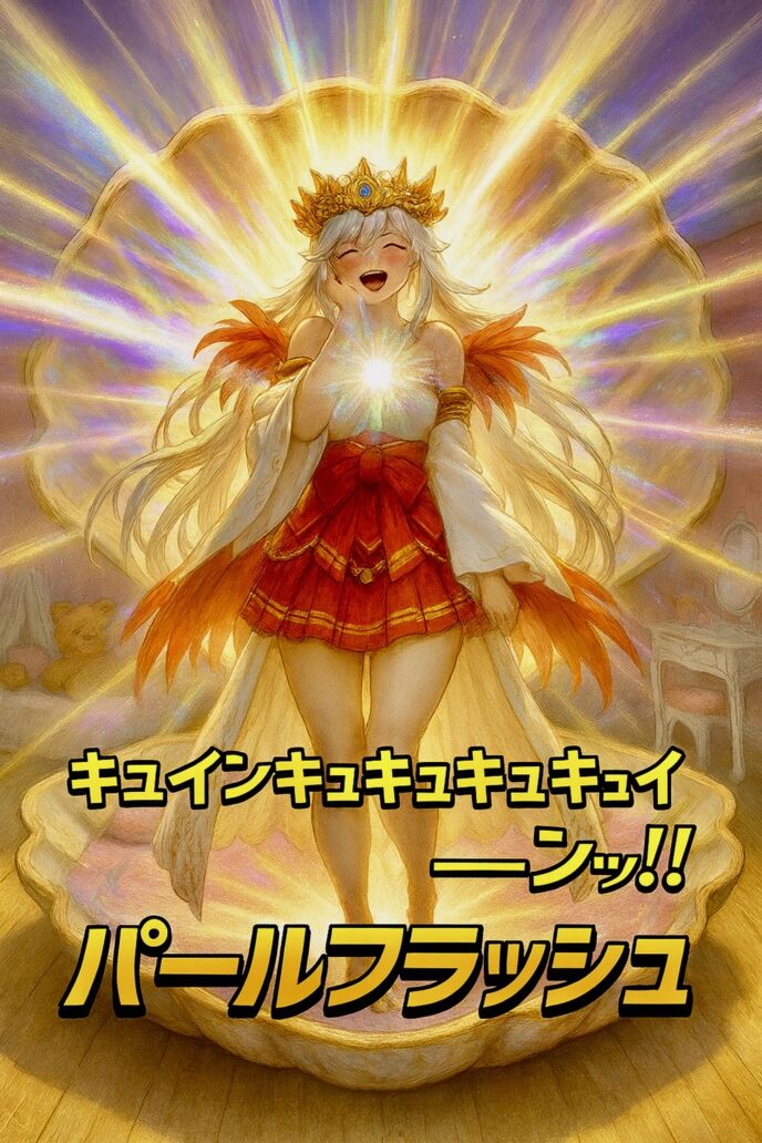 突然神々しい白亜の貝殻から激しい光が放たれ、