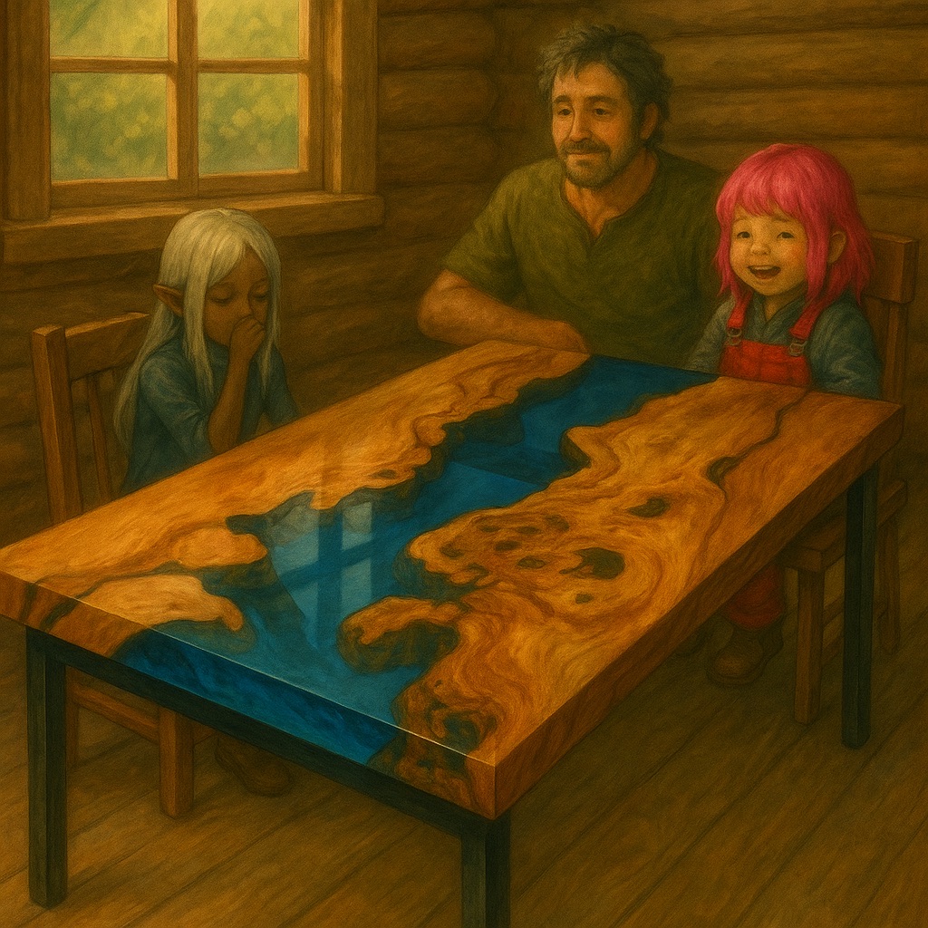 そんなこんなで、顔が映るほどの輝くレジンテーブルが完成した。