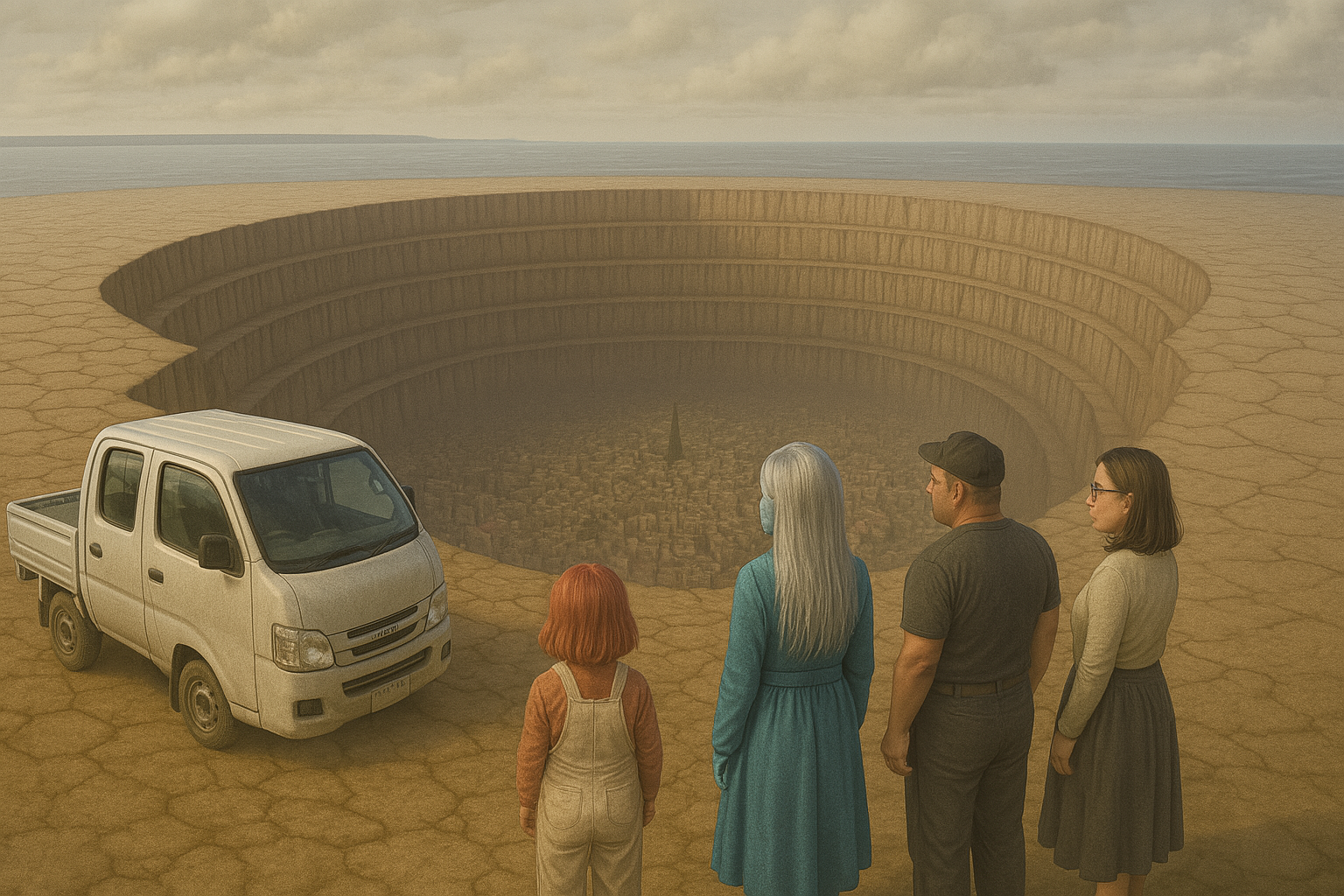 穴の底に街。階段ひとつ見当たらない。