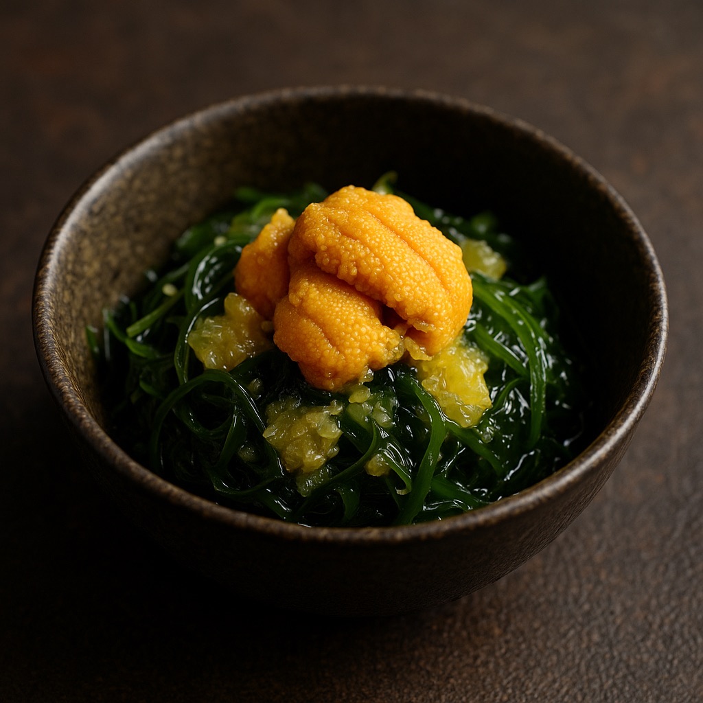 海藻サラダとウニを盛りつけ咀嚼してみれば、