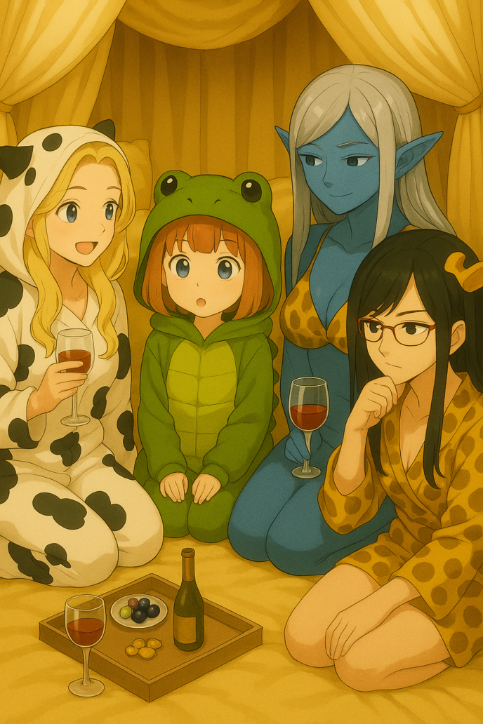 豪奢な姫部屋が一夜限りの女子会会場となっていた。