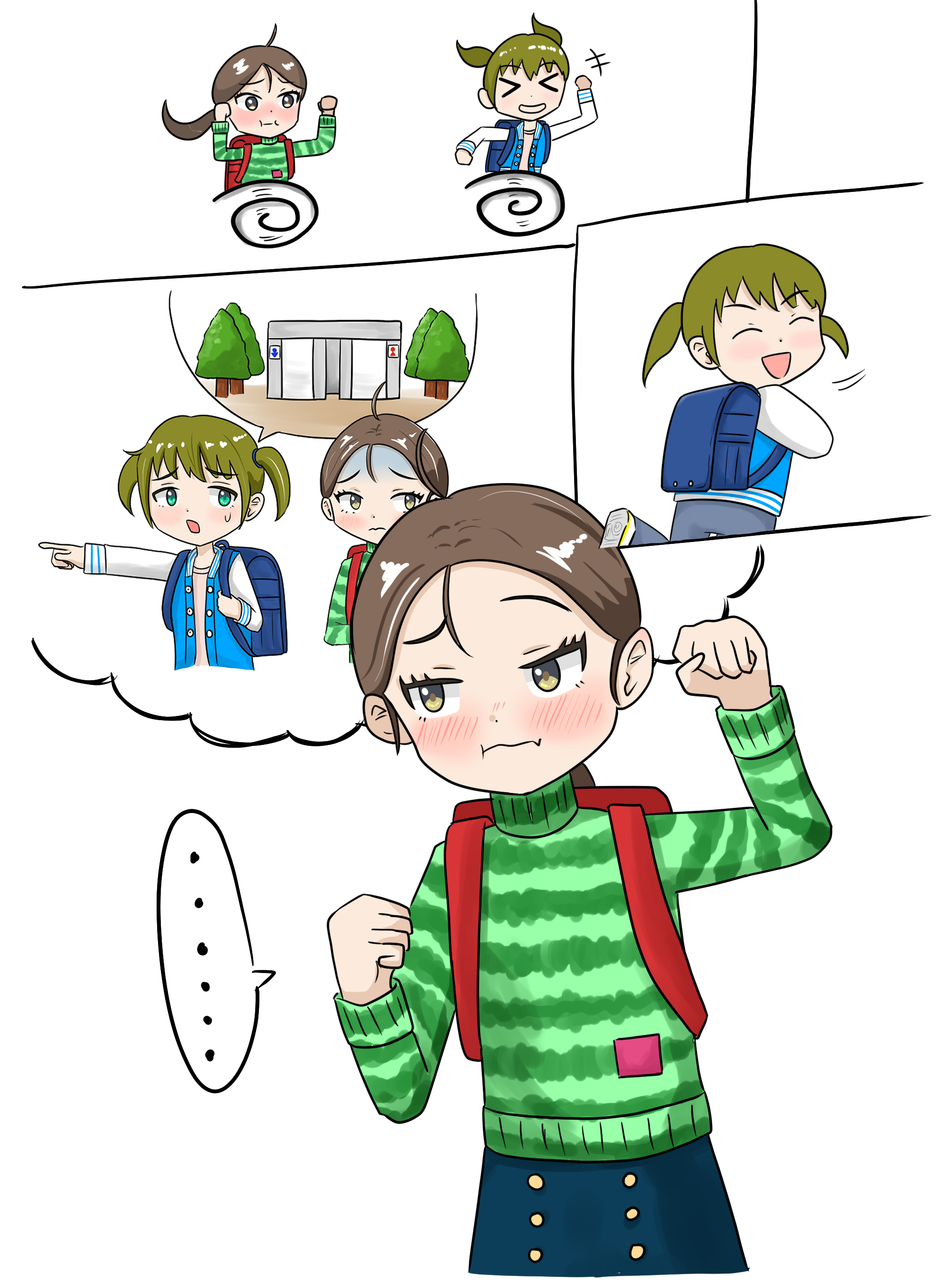 しぶしぶうなずいたツバキちゃんの顔は、あせりとはずかしさで赤くなっていました。ナズナちゃんはそんな様子を気にも留めず、楽しそうに