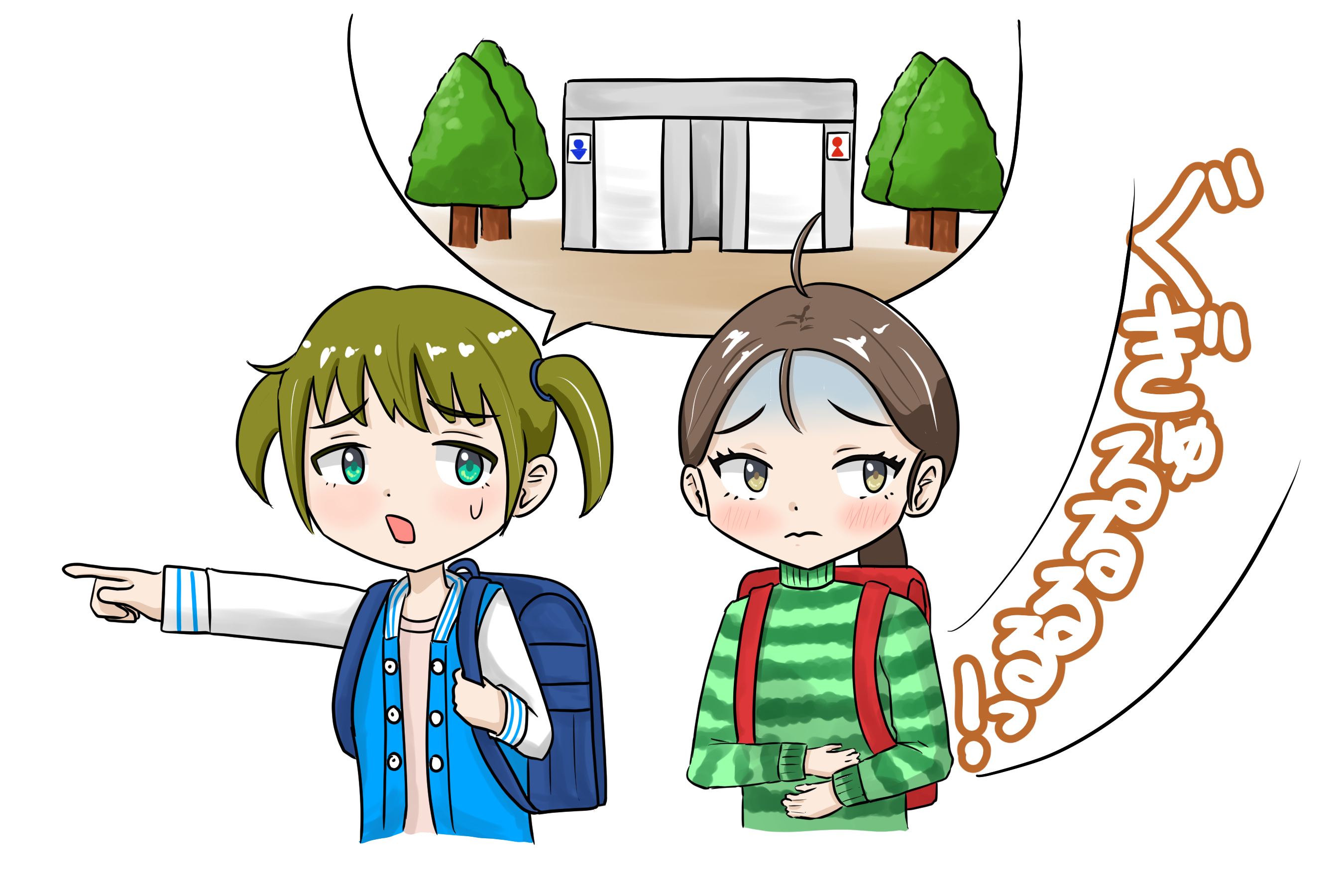 ナズナちゃんの言葉を背に、ツバキちゃんは足早に公園のトイレへかけこみました。