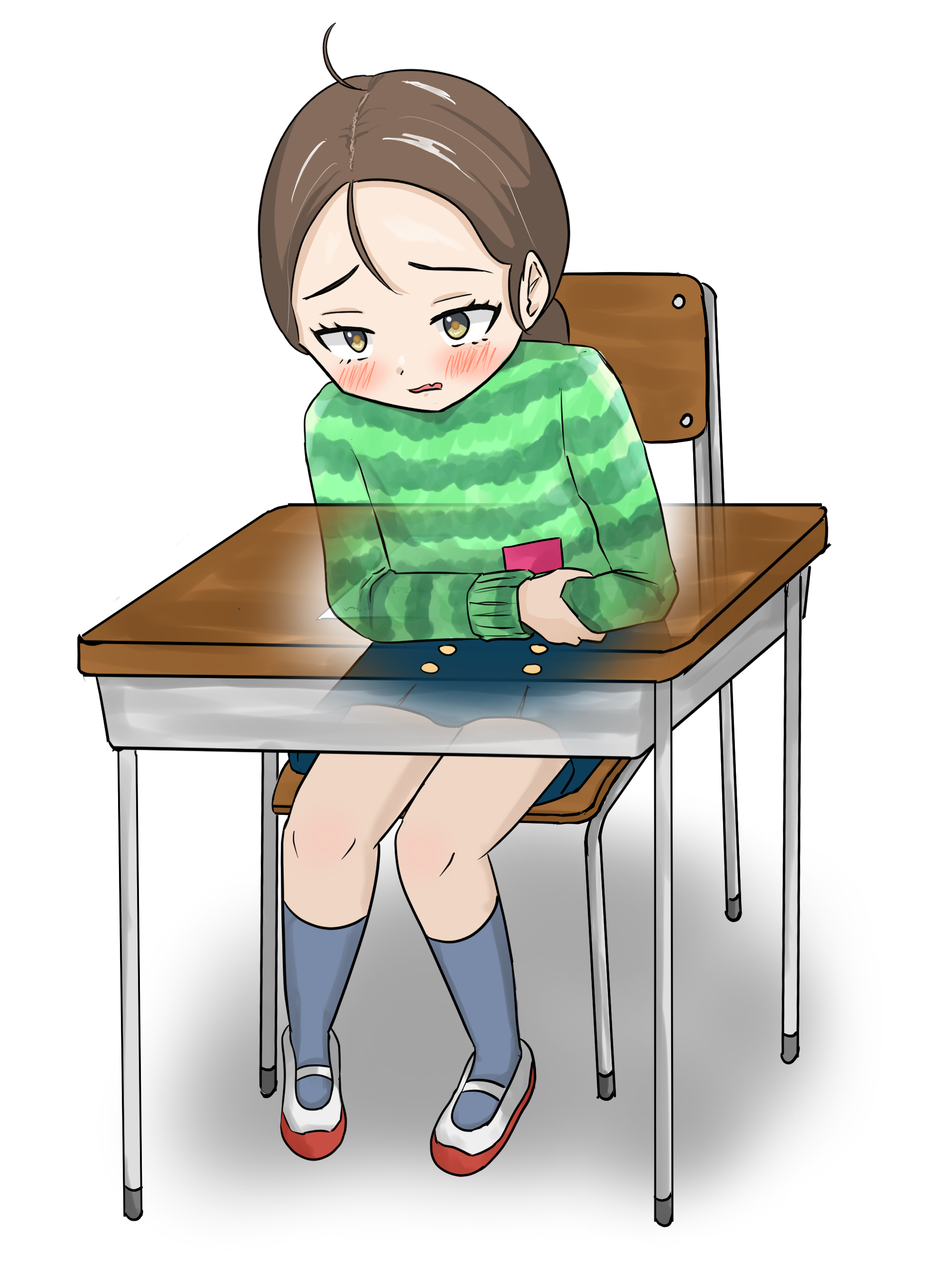 ツバキちゃんのお腹のおくから、腸がねじれるような感覚が走ります。ツバキちゃんは気取られないように周囲を見回します。まわりの子は先生の話に注意がいっています。腹痛にもだえるツバキちゃんのことにはだれも気づいていないようです。