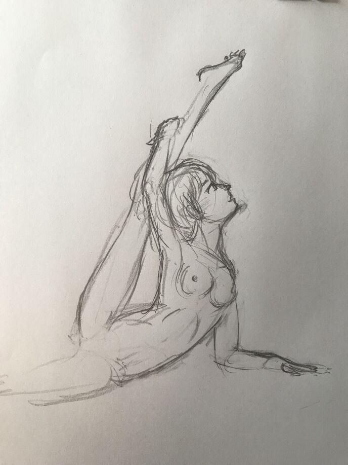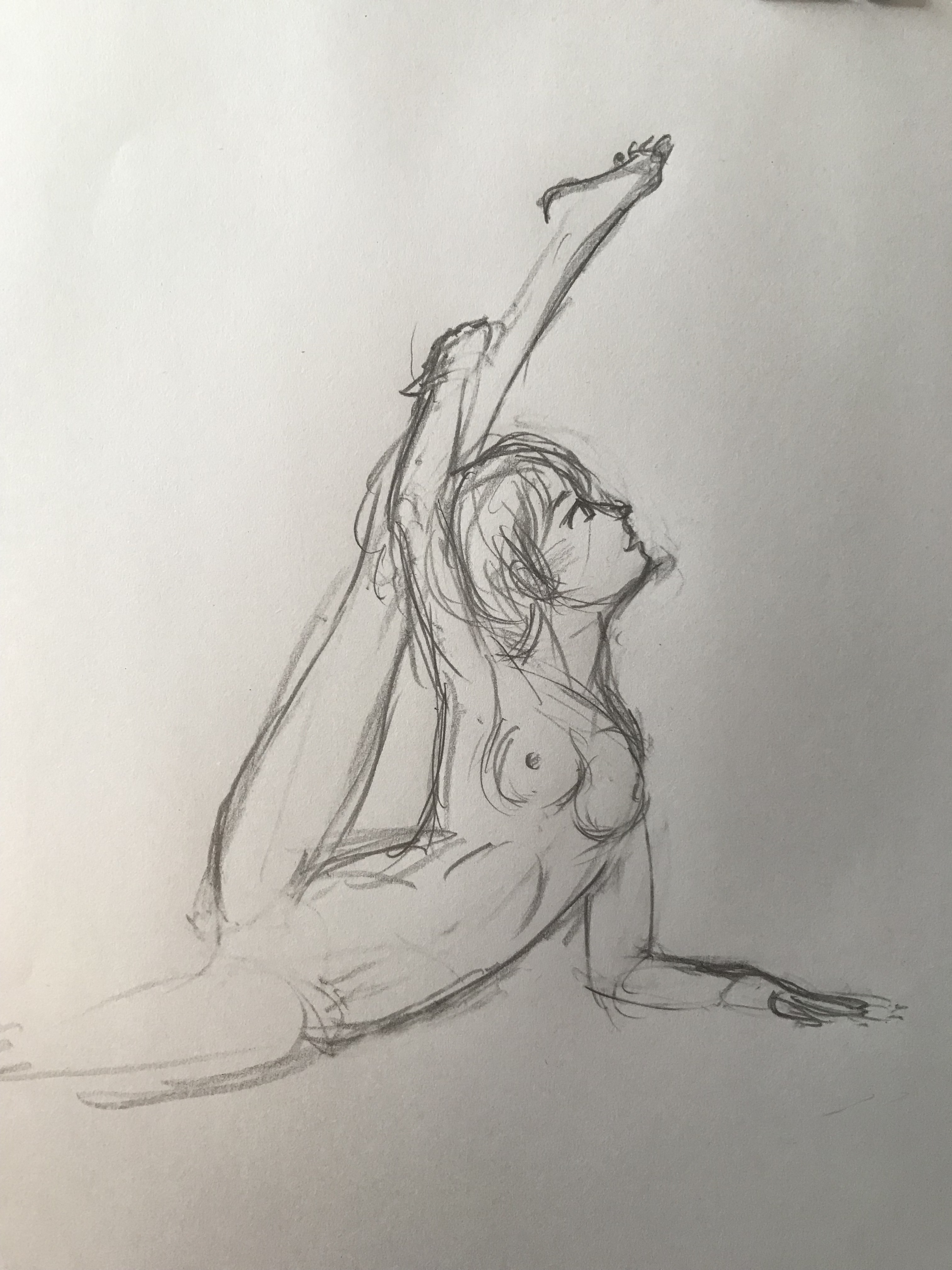 とにかく棒立ちにならない事、立ポーズ座り、寝るポーズを変えながら、香織のアドバイスを思いだしながらポーズをとった。最後の10分膝立ちして脚を開くポーズをとった。