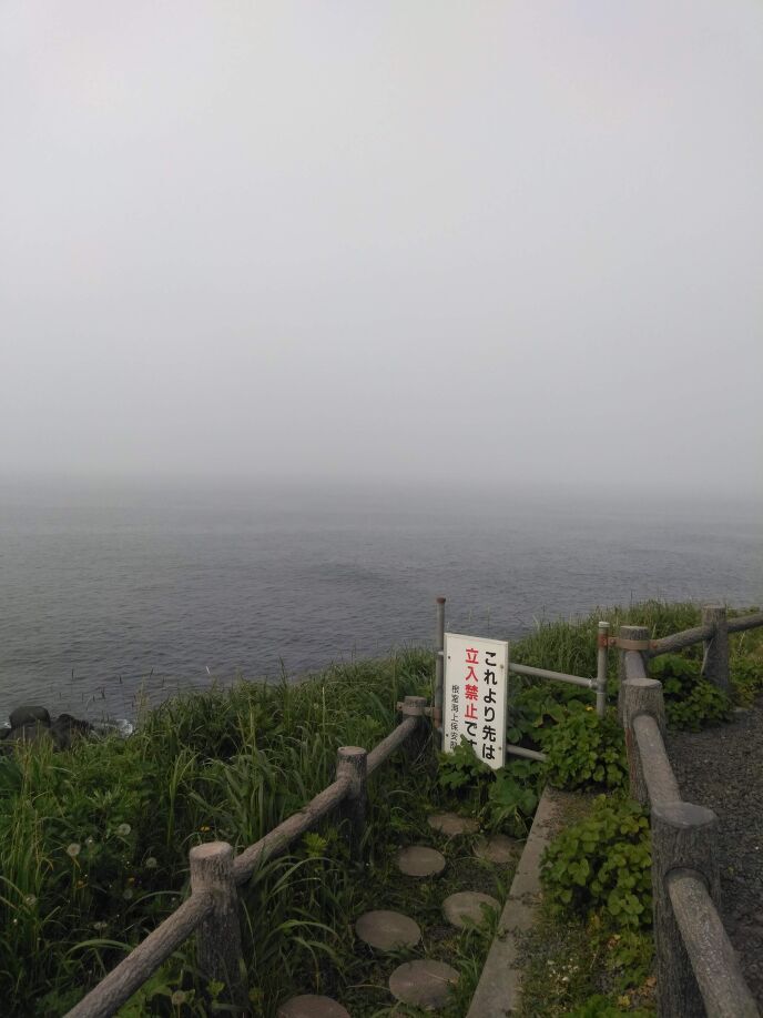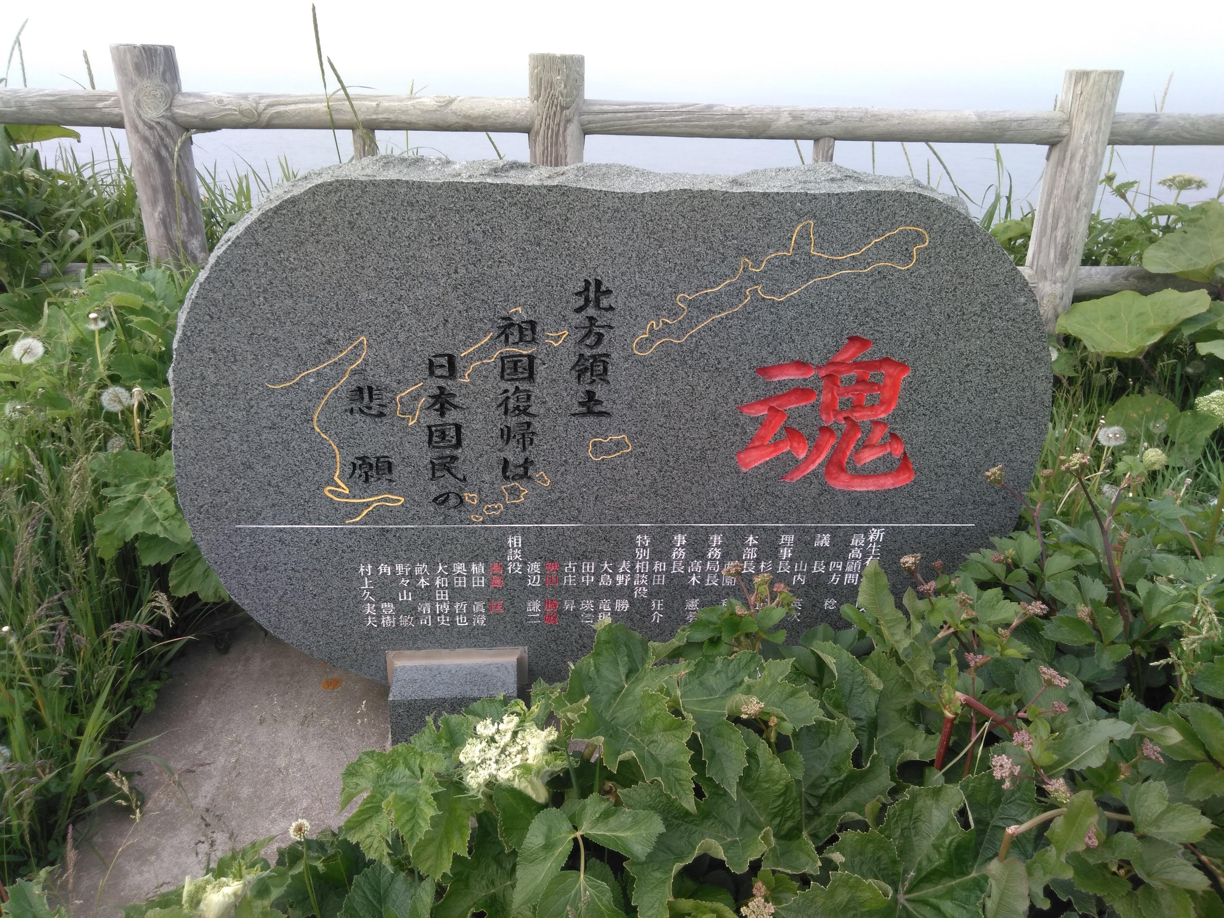※写真はうっすらとしか見えない国後島(?)と納沙布岬の石碑です。