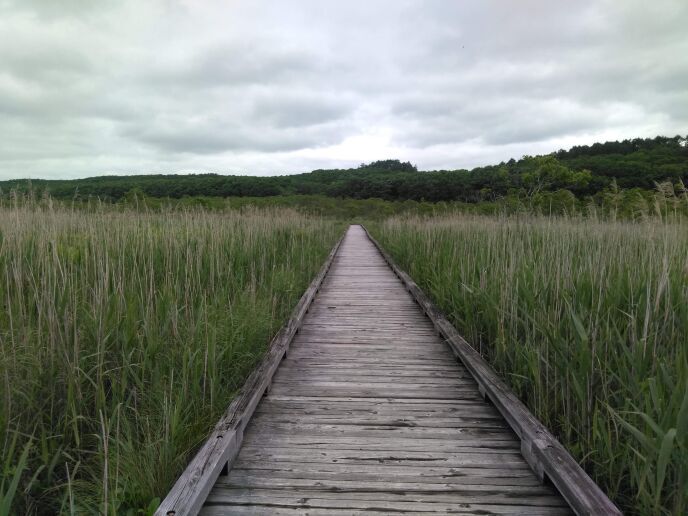 途中にいくつかある展望台の急坂登り下りを繰り返し、いろんな方角から釧路湿原を見渡し、遊歩道のあるポイントまでTSR125を走らせ、がっつり散策してきました。約7キロ、ゆっくり時間をかけて2時間!