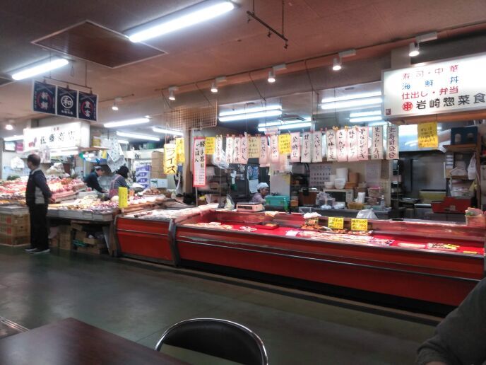 歩き終わって、資料館でいろいろと見た後、昼のいい時間になったので、前回行けなかった釧路の「和商市場」にむかいました。