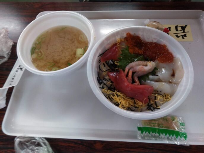隼乗りのおじさんに教えてもらってたお店に行き「勝手丼」セット(ランチサービス?)を楽しんできました。