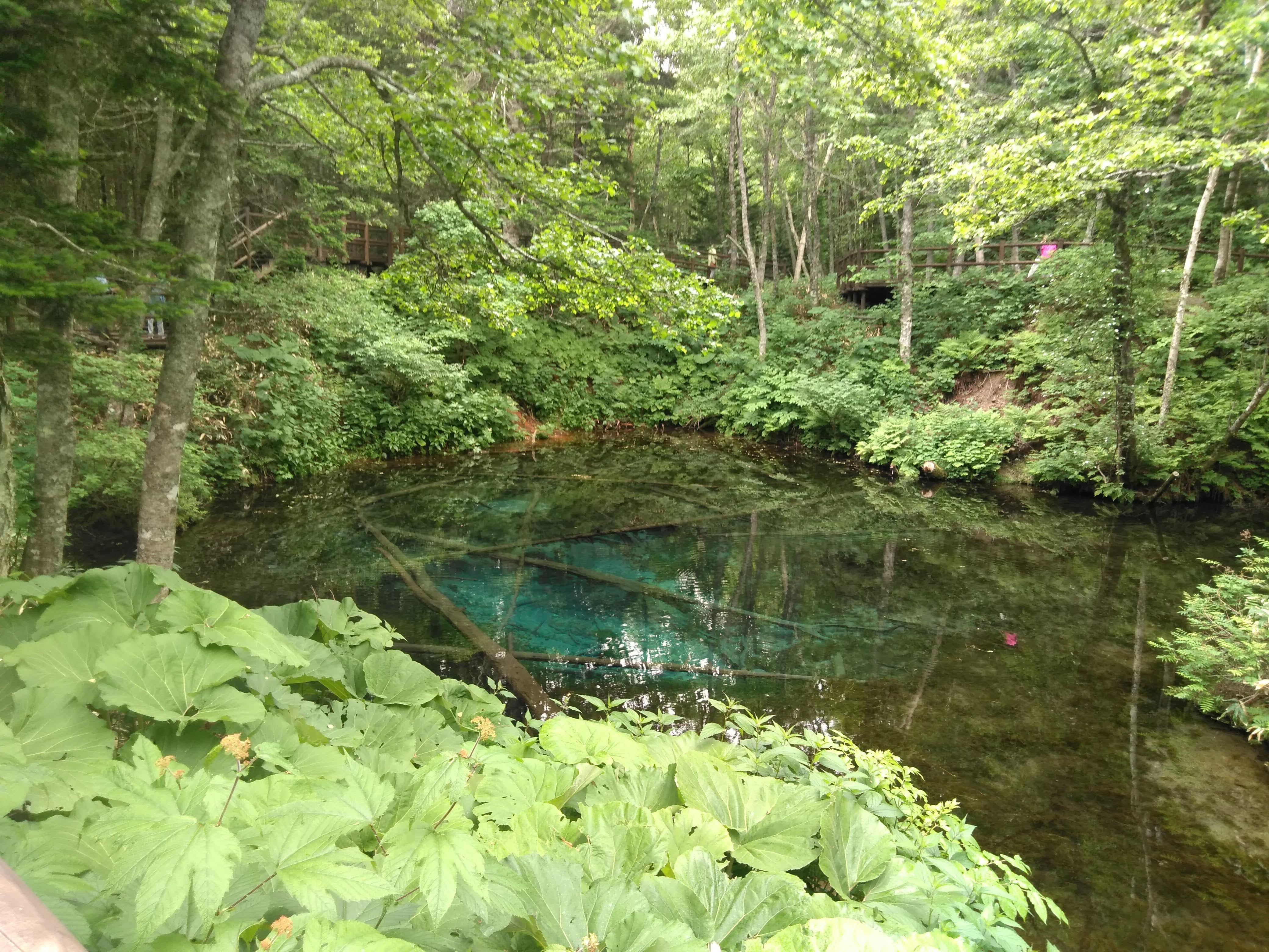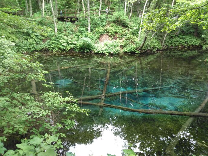 全く商業化されていないスポットなので、神秘的な青(※「蒼」と書く方がマッチしてるかな?または「碧」かな。写真見て判断してください。)い水面を通して沈木が見える風景は、先日行った「オンネトー」とは別の味わいがあります。