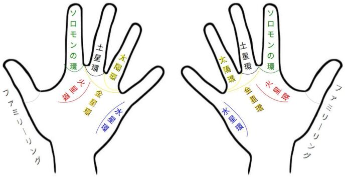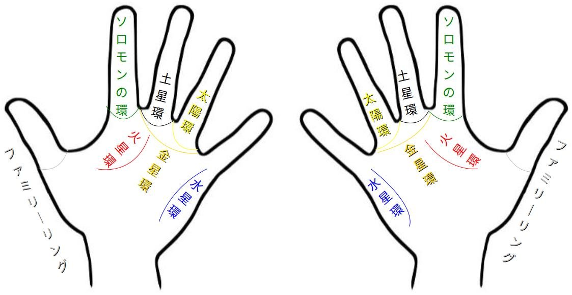環紋(リング)が有る時は、幸運の気が存在するし、指や丘の意味を強めます。