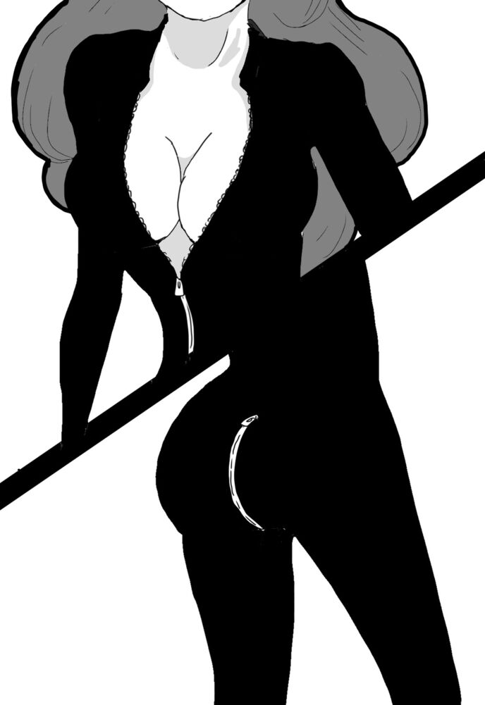 そう言って、首元のファスナーを胸の谷間の下まで下げ、お尻のファスナーも同じところに上げてきた。