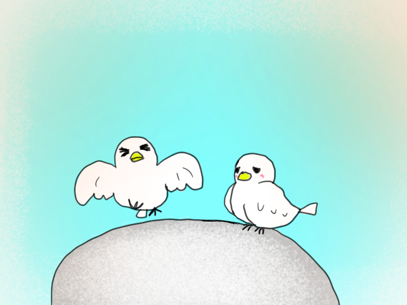 彼はいつものように飛ぶ練習をしていました。もう1羽のなまけものの鳥は、そんな彼の姿をいつものようにながめていました。