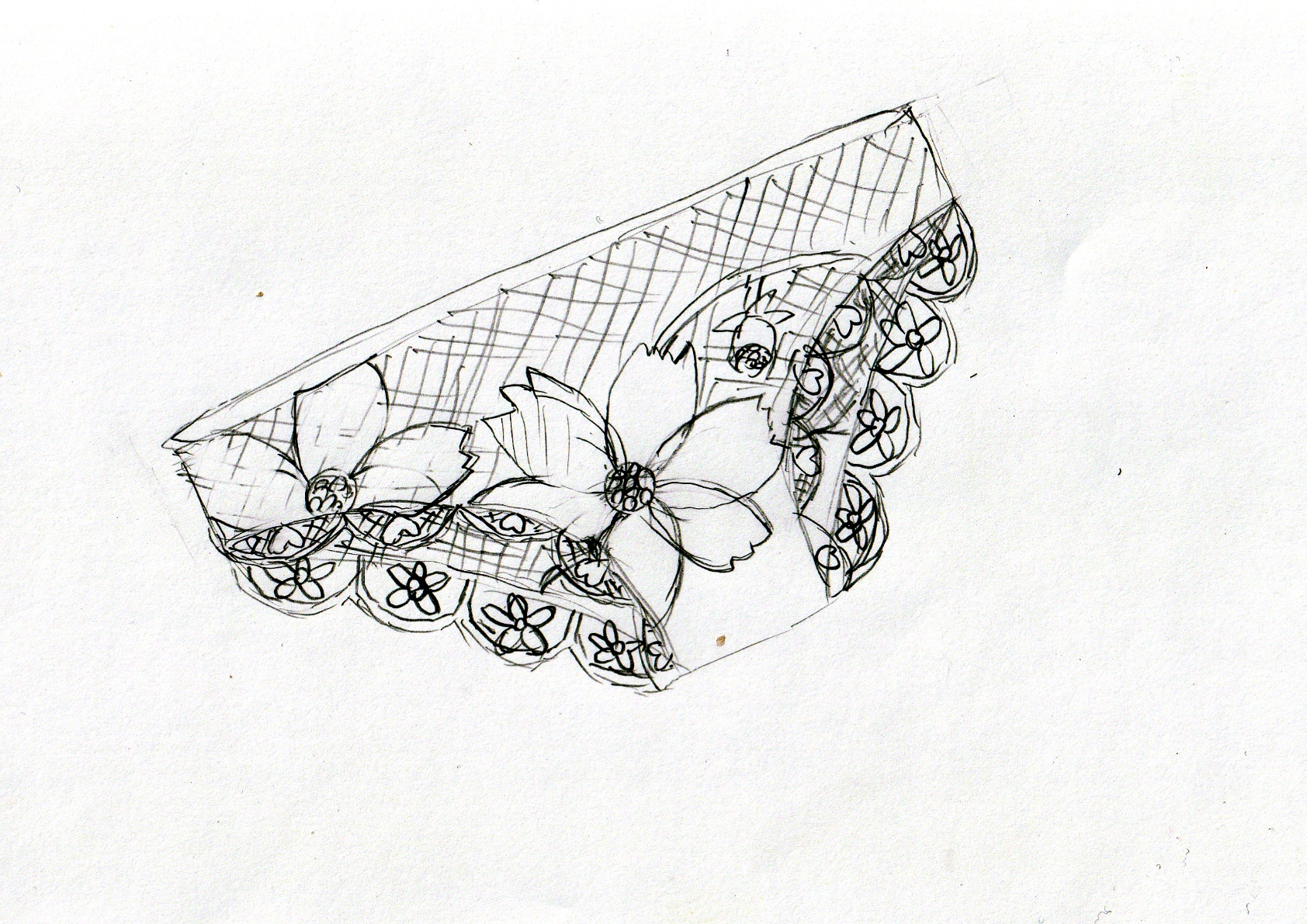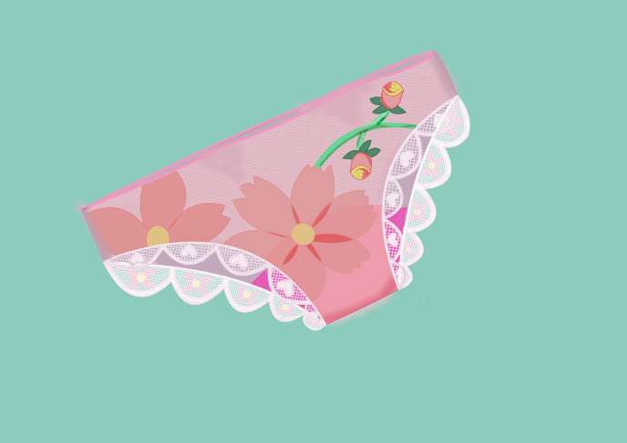 ピンクの薄手のパンジーの花柄パンティ一枚である。