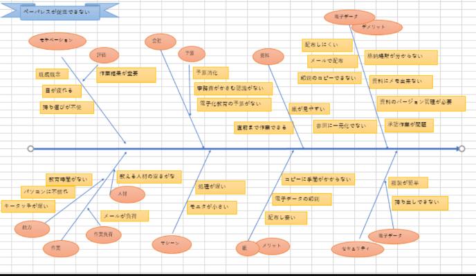 実則は、画面に『ペーパレスを促進できない(特性要因図)』を写して幸に見せた。