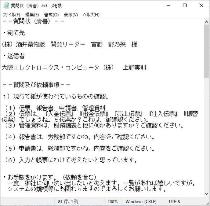 --質問状の清書--