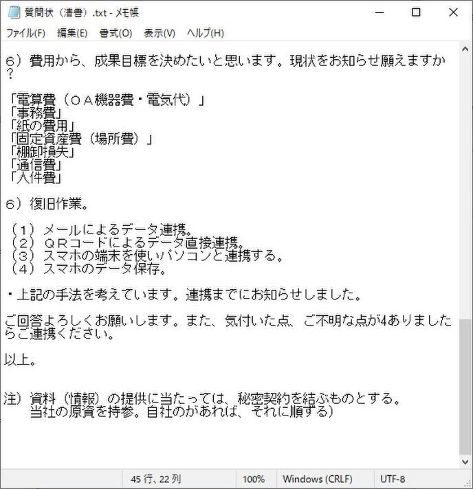 6、質問状の清書