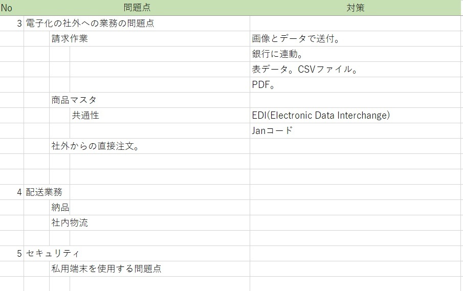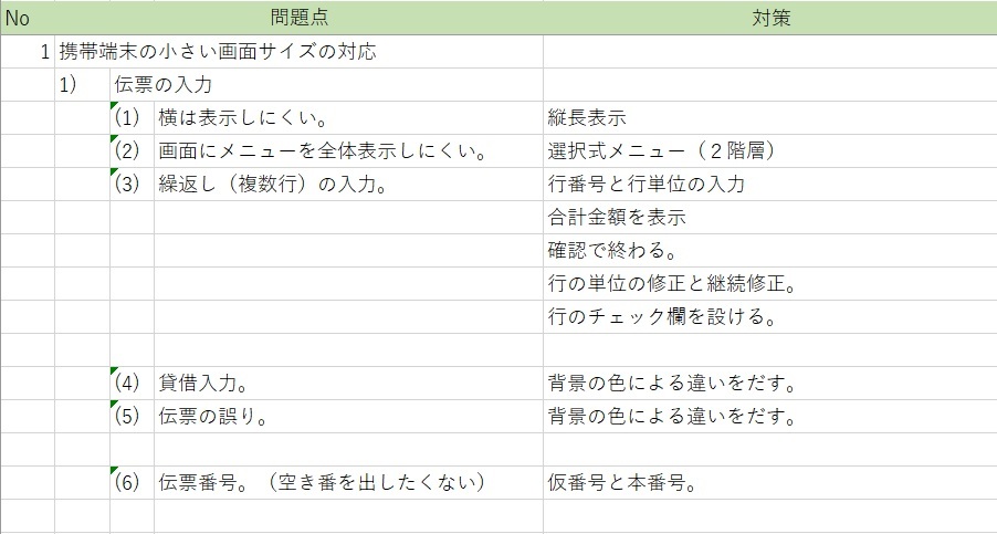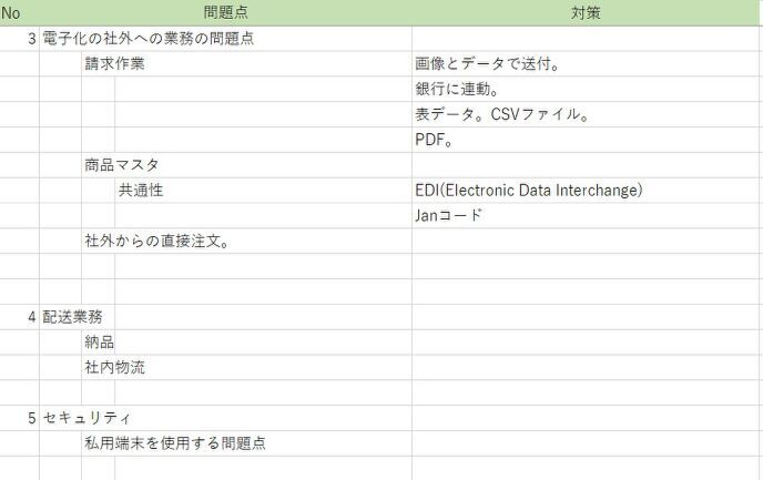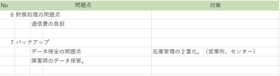 問題点と対策を整理した表です。(完成したものではありません。途中です)