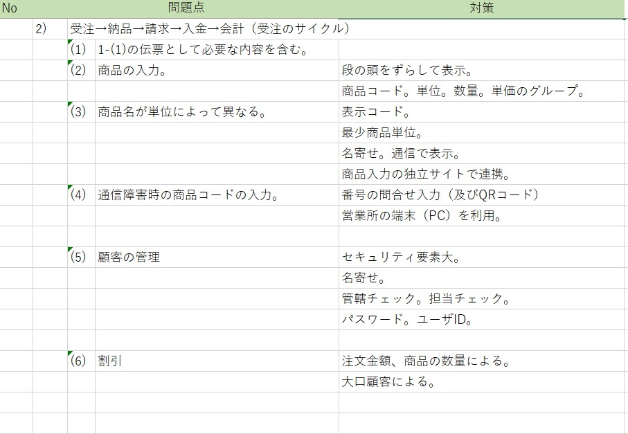 本当は、細かな問題点とそれに対応する対策に整理して書くところですが、