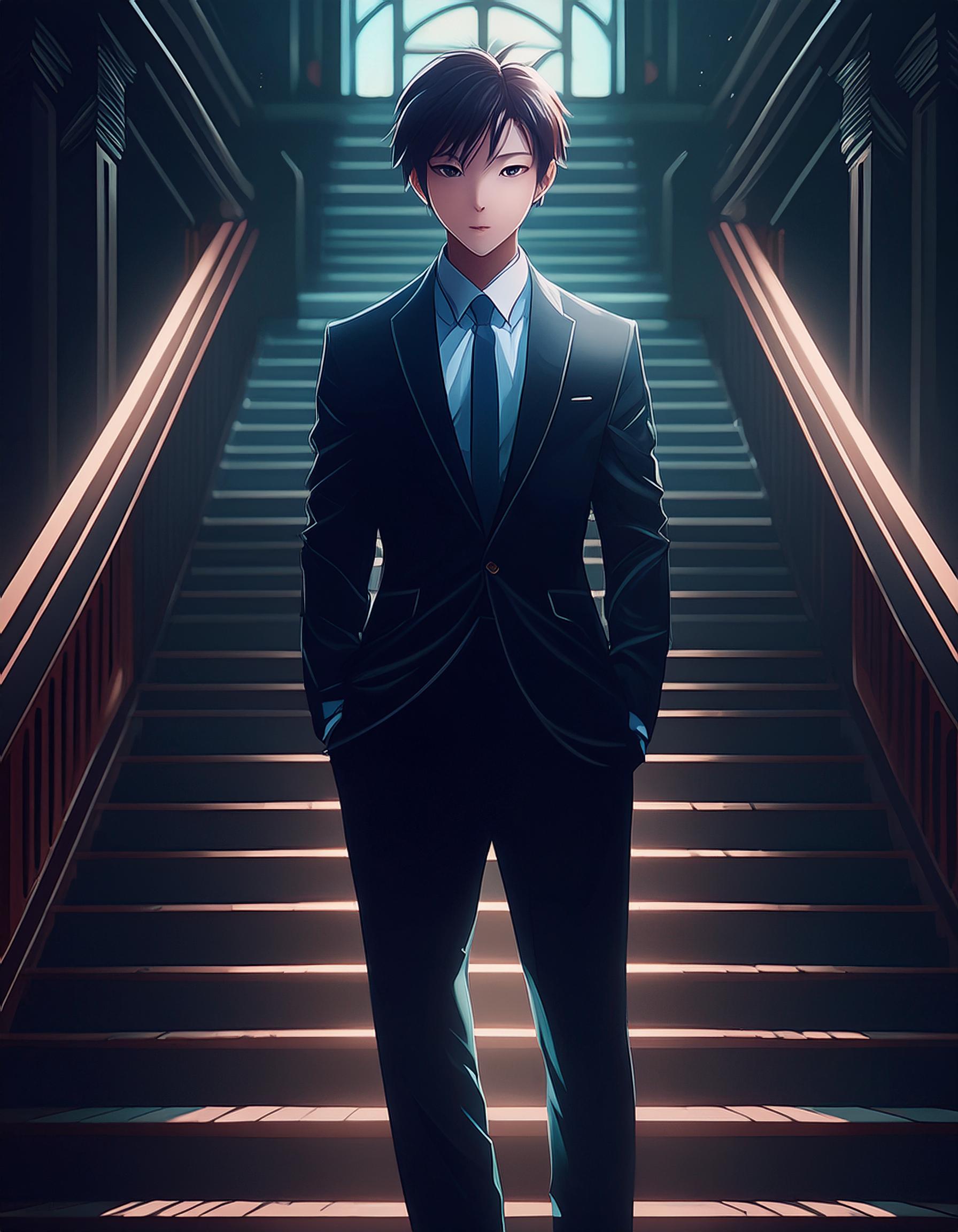 真面目だが強気で、どこか挑発的な笑みを浮かべる青年。