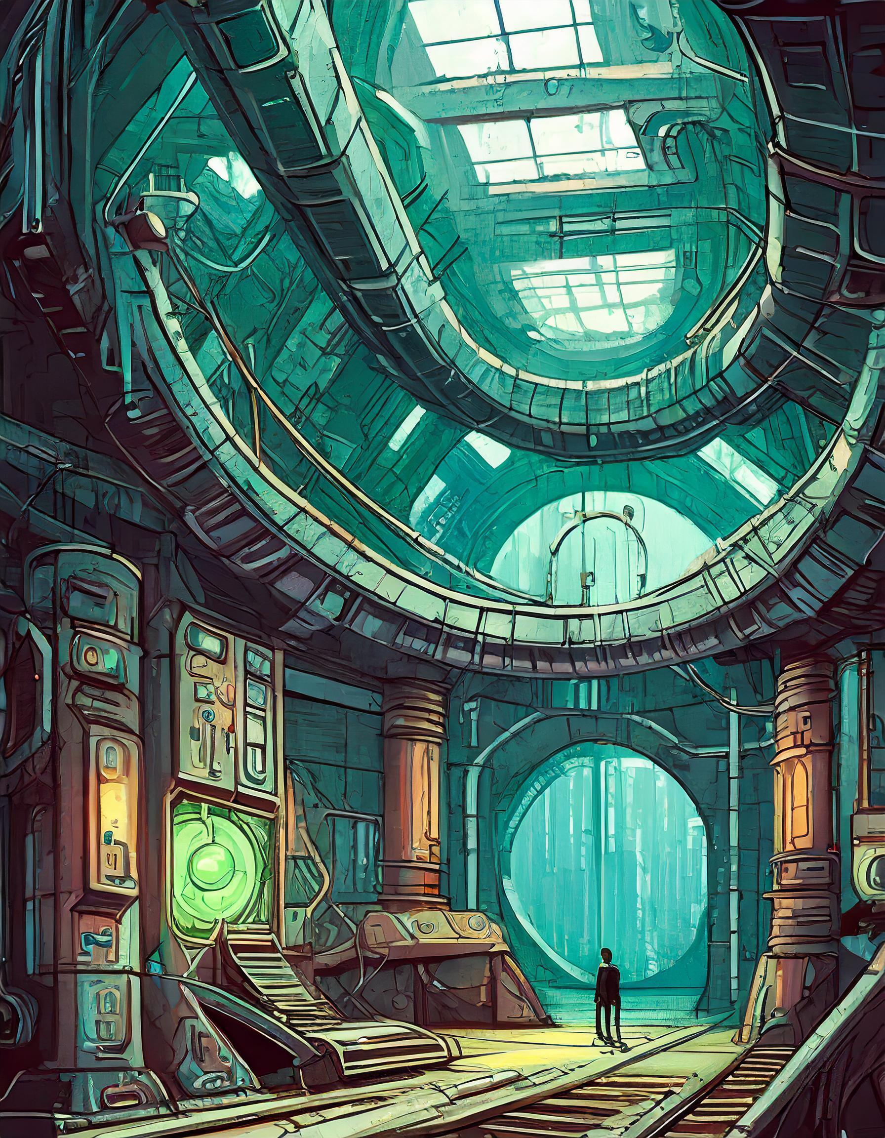 彼は機械に手をかざし、無意識のうちに操作を始める。画面は光り、施設は生き生きと反応する。どうやら、この施設は彼の命令を待っていたかのようだ。