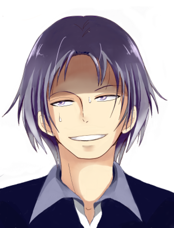 真面目だが強気で、どこか挑発的な笑みを浮かべる青年。