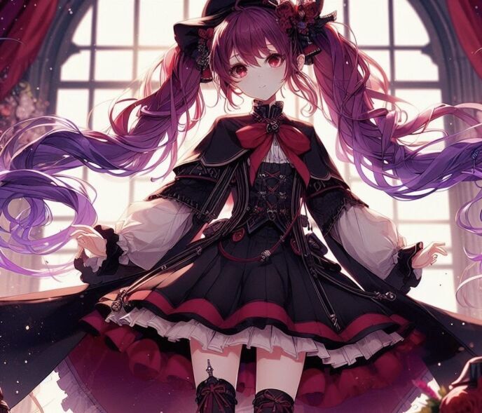 服装は完全にゴスロリファッション、黒で統一されてフリフリのワンピース、ブーツとタイツも履いている