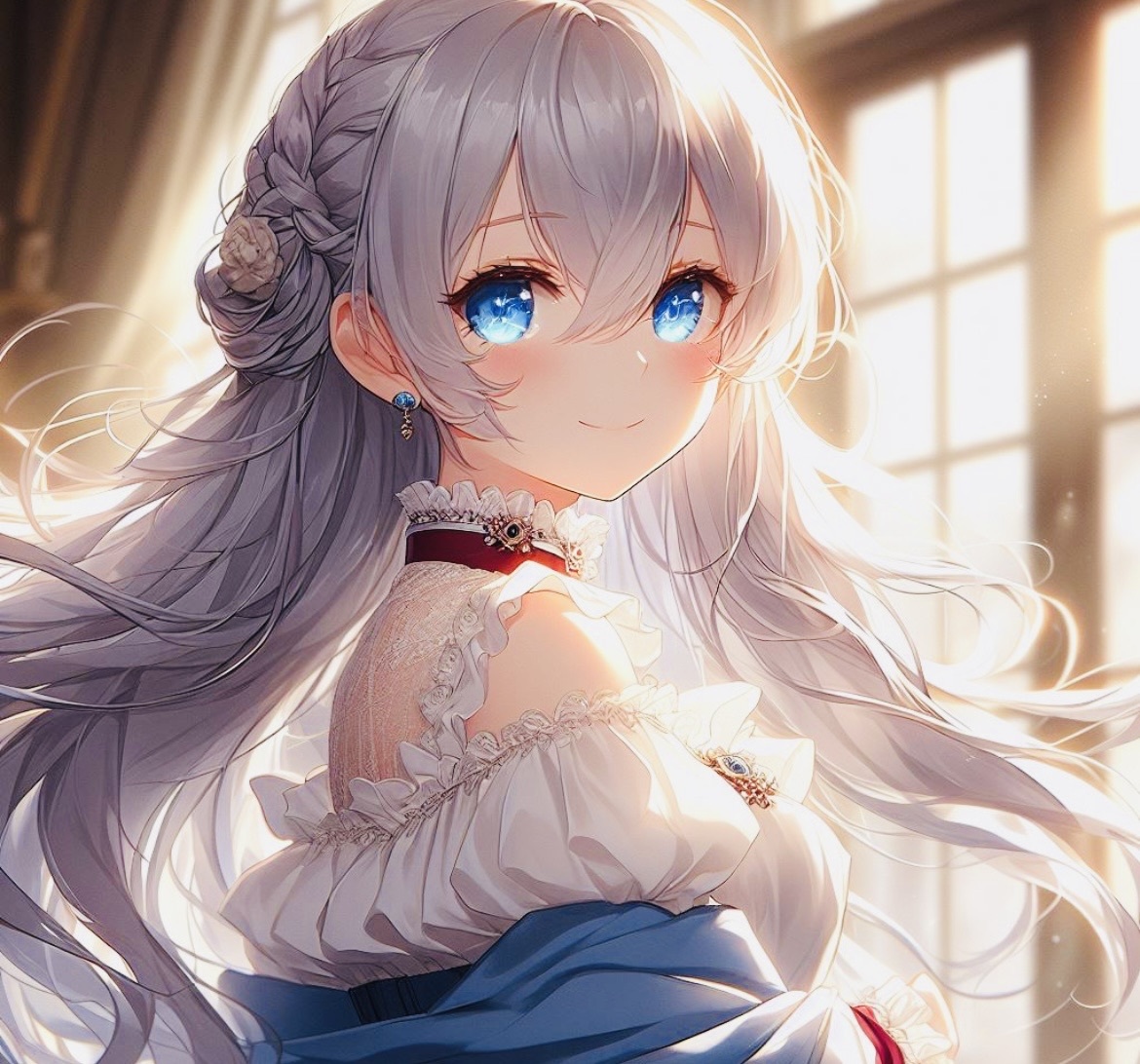 銀髪の髪を高い位置で一束に結び、袴のような服を少しラビス風にアレンジされた服装、腰には日本刀を二本下げている