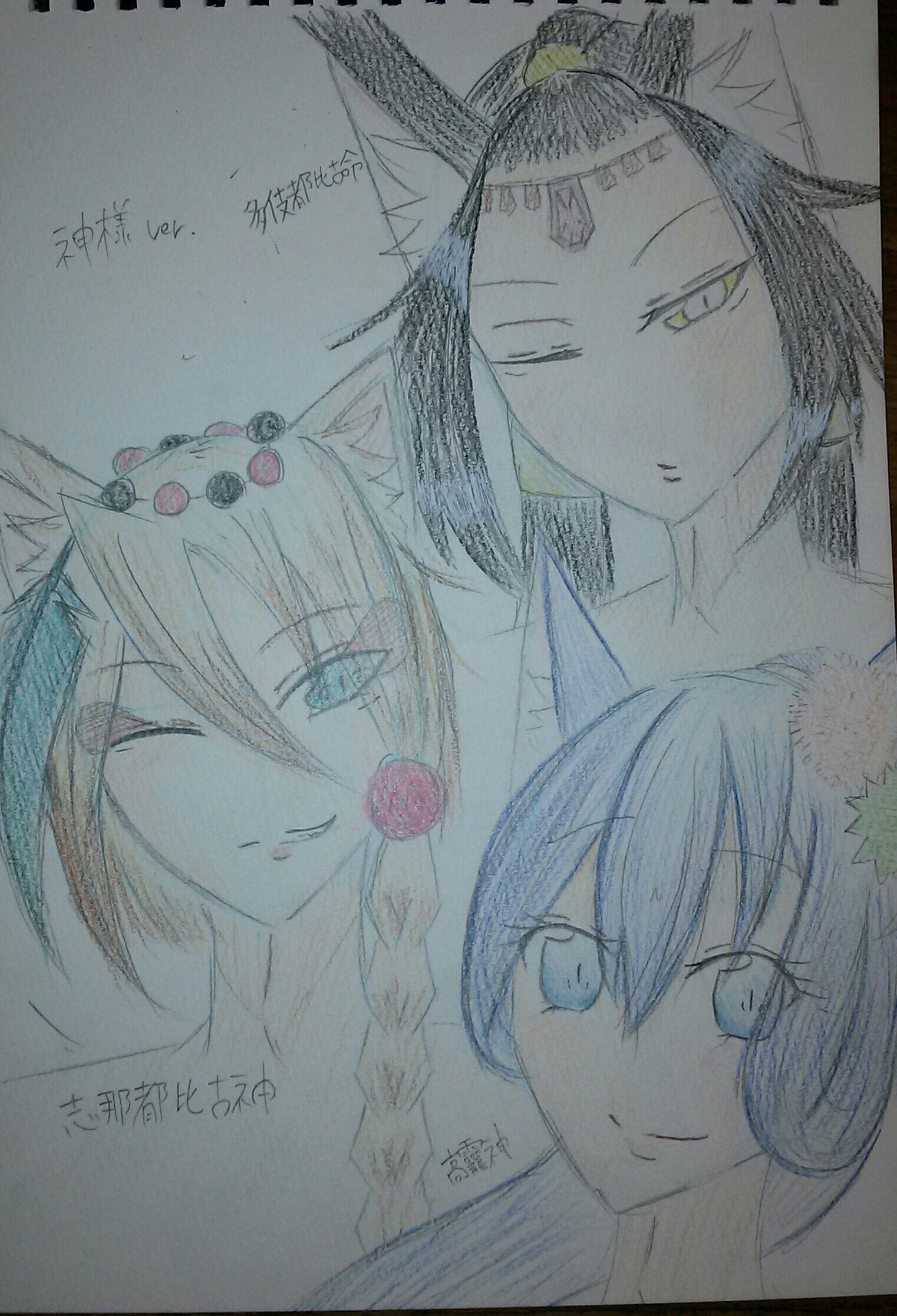 1枚目は千凪、千雪、千雨の神さまVer.で、それぞれ名前にあった神さまの名前をもらってます!絵は私が好きに描いたので神さまとは実際に関係ありません!