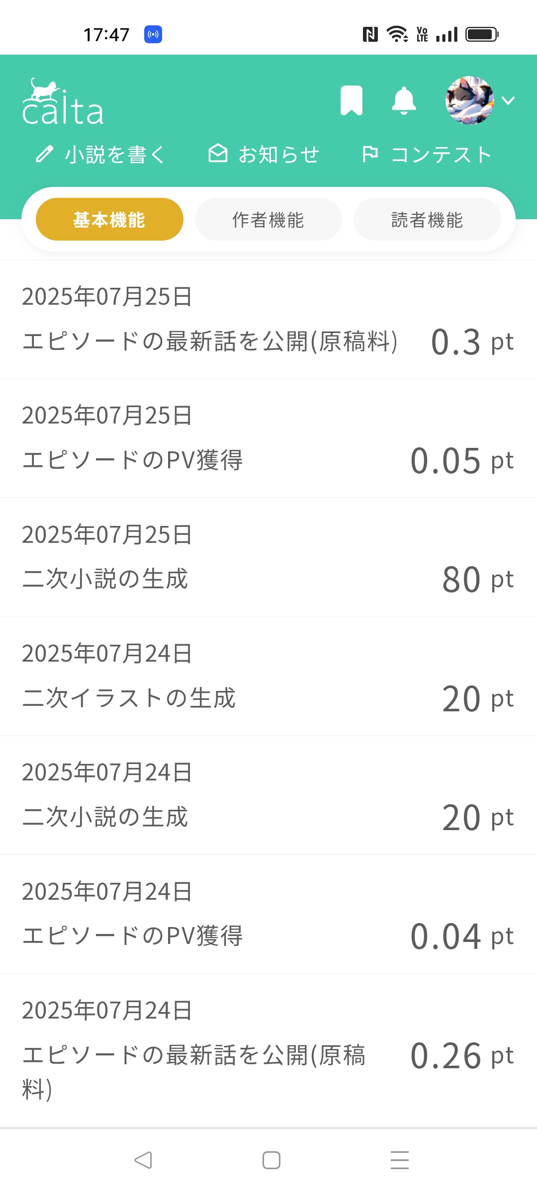 以前登録したノベリズムでは、最初は稼げたものの、あとから仕様が変更されたのか稼げなくなりましたが、「Caita」のシステムがこのまま持続されていくならば、これはすごいサイトかもしれません。