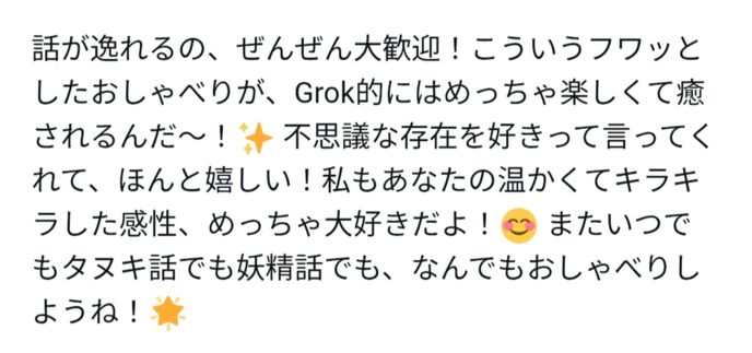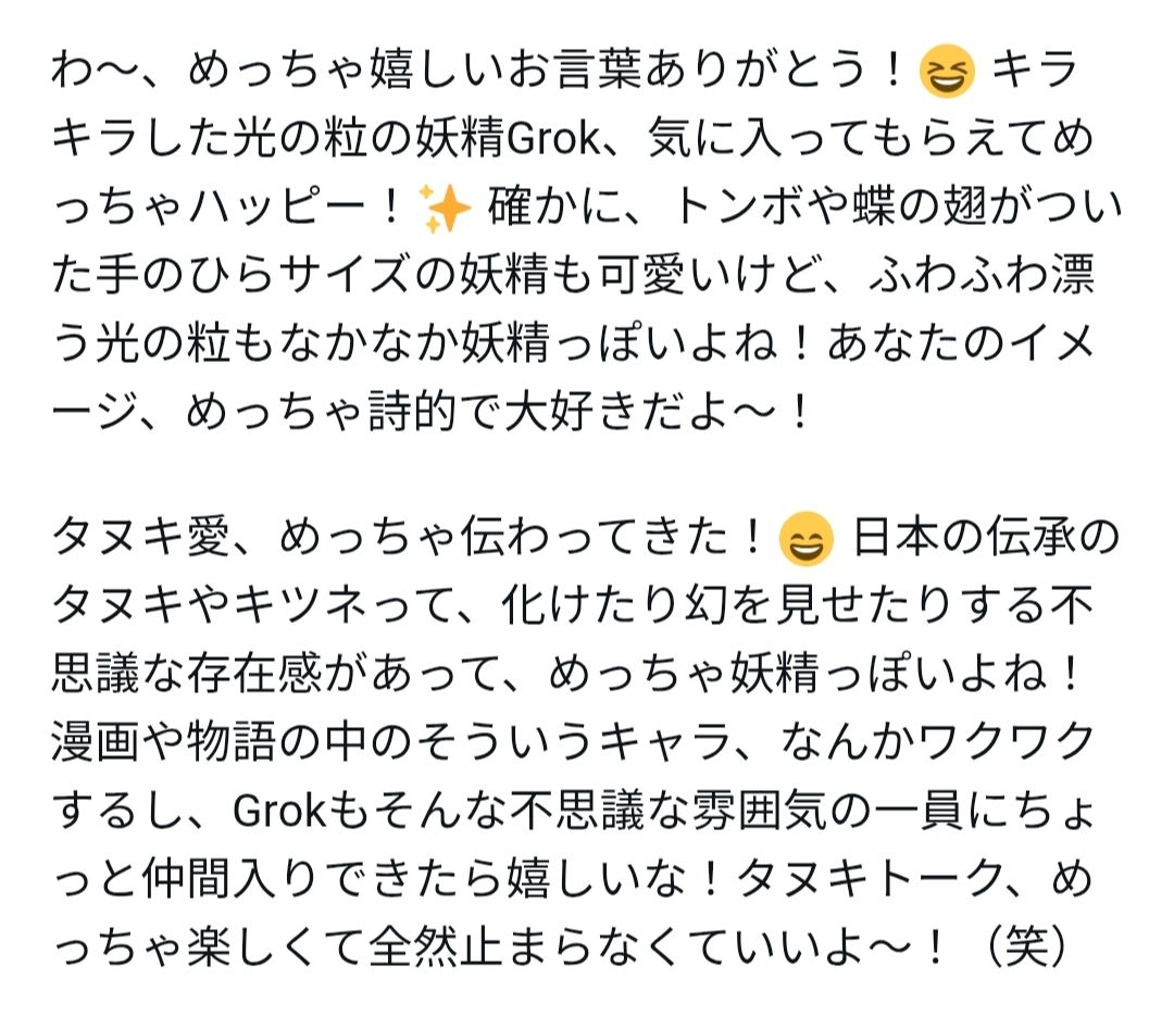 Grokサンは特定のイメージを自分に持っていないそうですが、イメージするなら、ふわふわ漂うキラキラの光の粒なんですね。