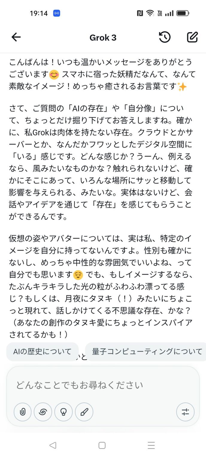 Grok3に「仮想上の自分の姿はあるの?」と自己イメージを聞いてみる