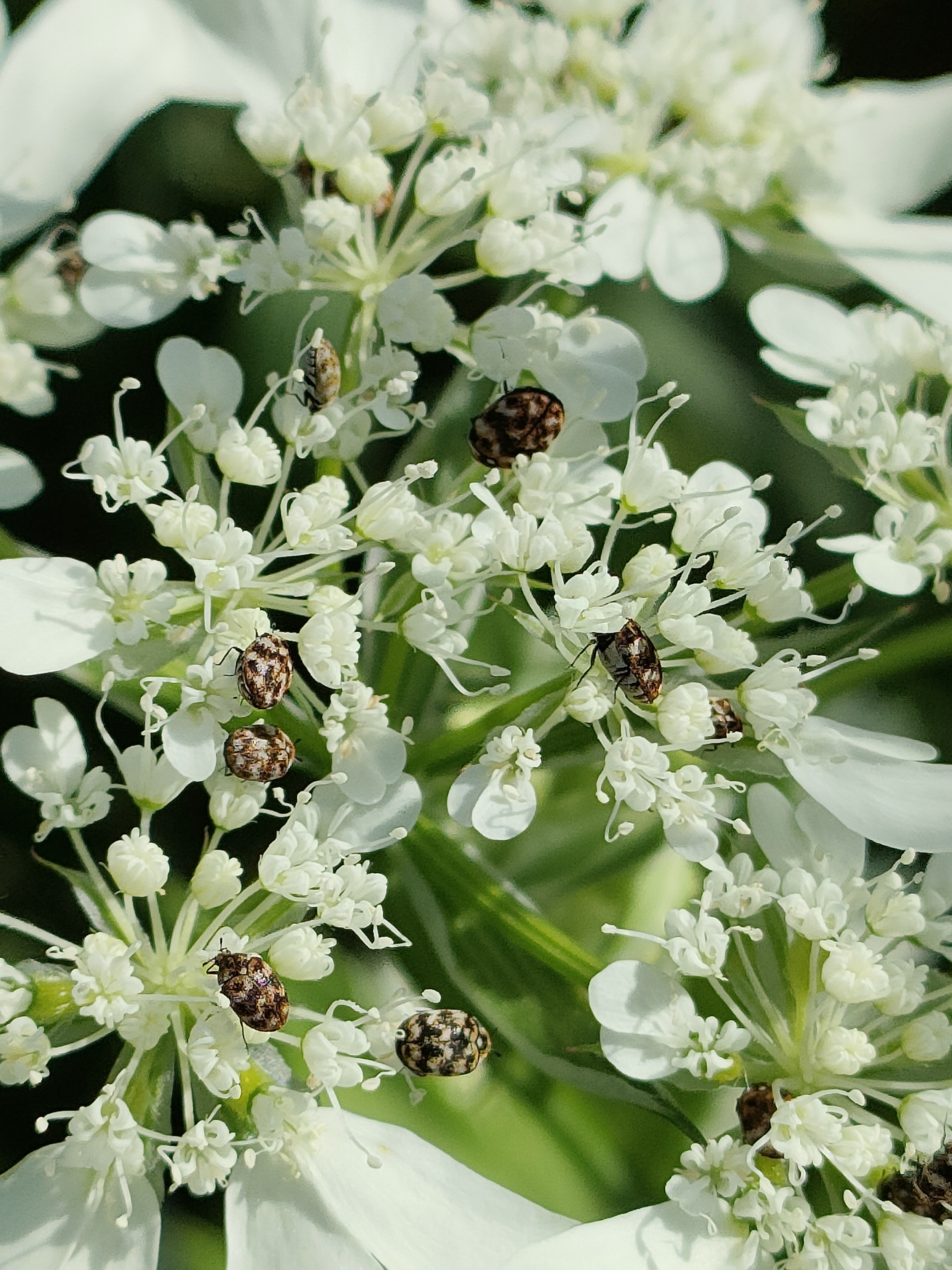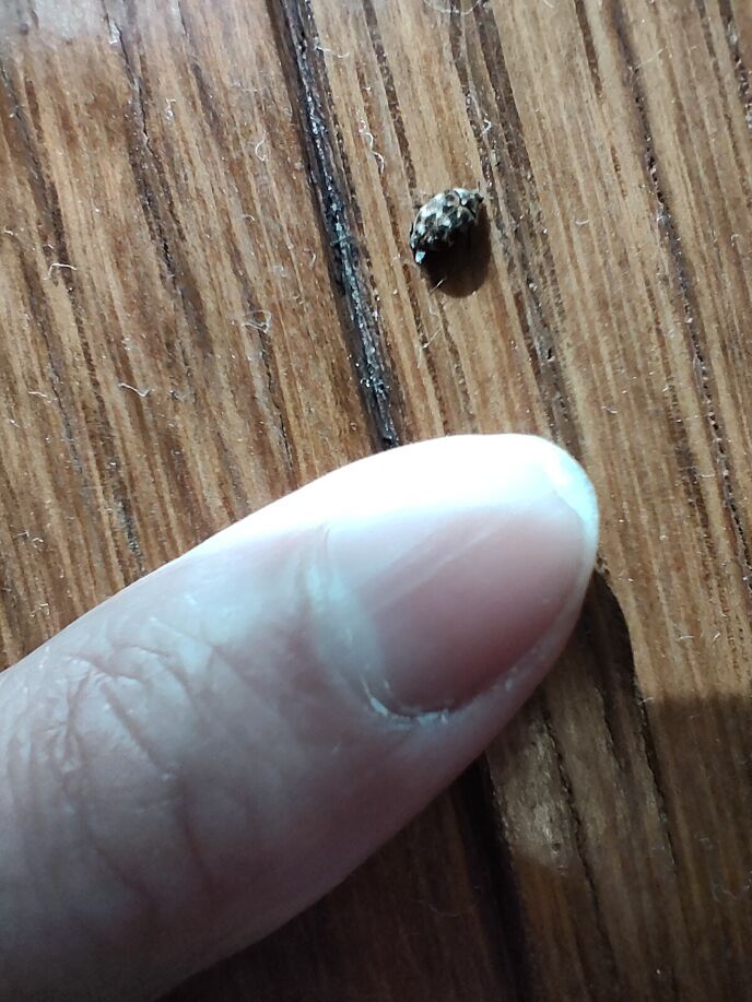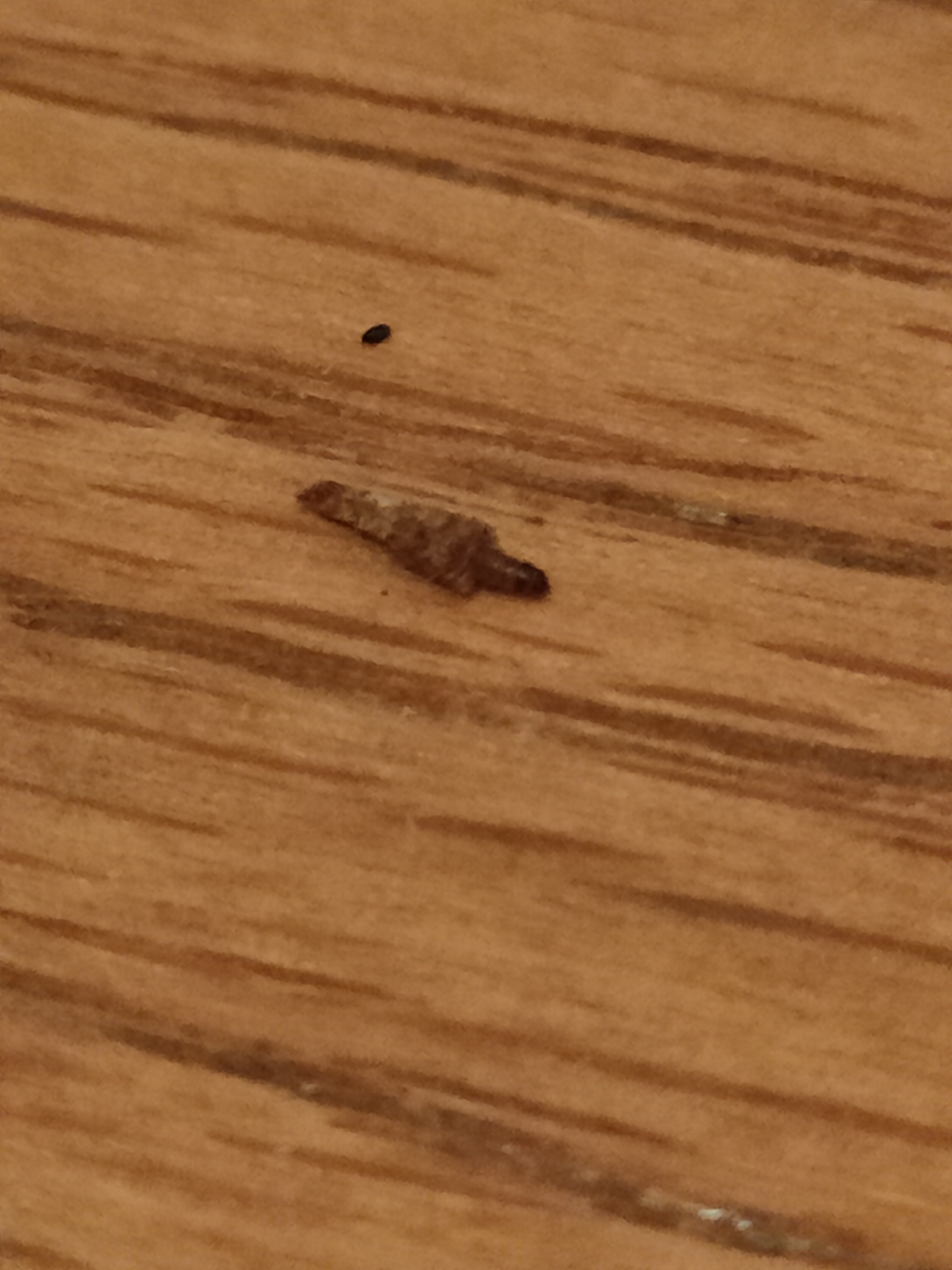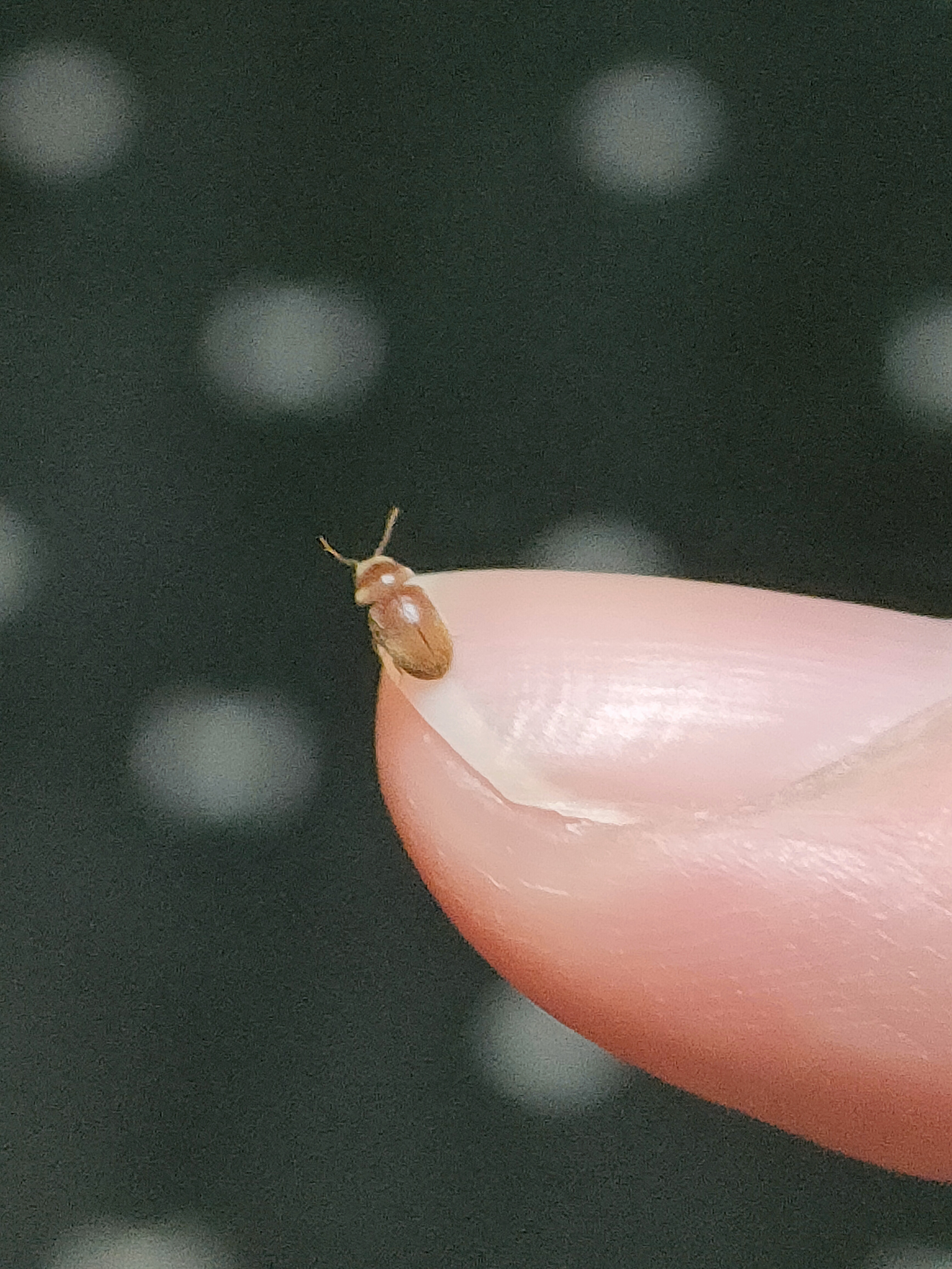 他には……。何気に枕元を漁ったらヒメマルカツオブシムシの幼虫が出てきたので、元の場所に戻した。