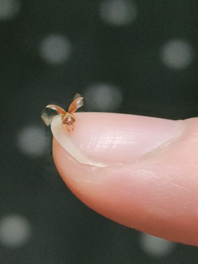 ありんこのサイズは中型くらい? 走るように歩き回る。足に乗ってきたことはあるけど、まだ噛まれたことも、耳や鼻に入ったこともない。時間の問題かな。