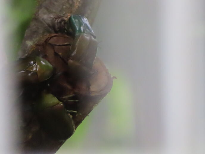 しおりを挟むカナブンたちが樹液をめぐって必死で争いを繰り広げる様子を眺めつつ、「あれっ? 樹液が出ているということはもしかしてここ、朝や早朝にはカブトムシスポットになっているんじゃないの?」などと想像していた、ある日の昼下がり。ふと庭の地面を見ると、成虫一歩手前くらいの大きなカマキリ幼虫がテクテク歩いていた。