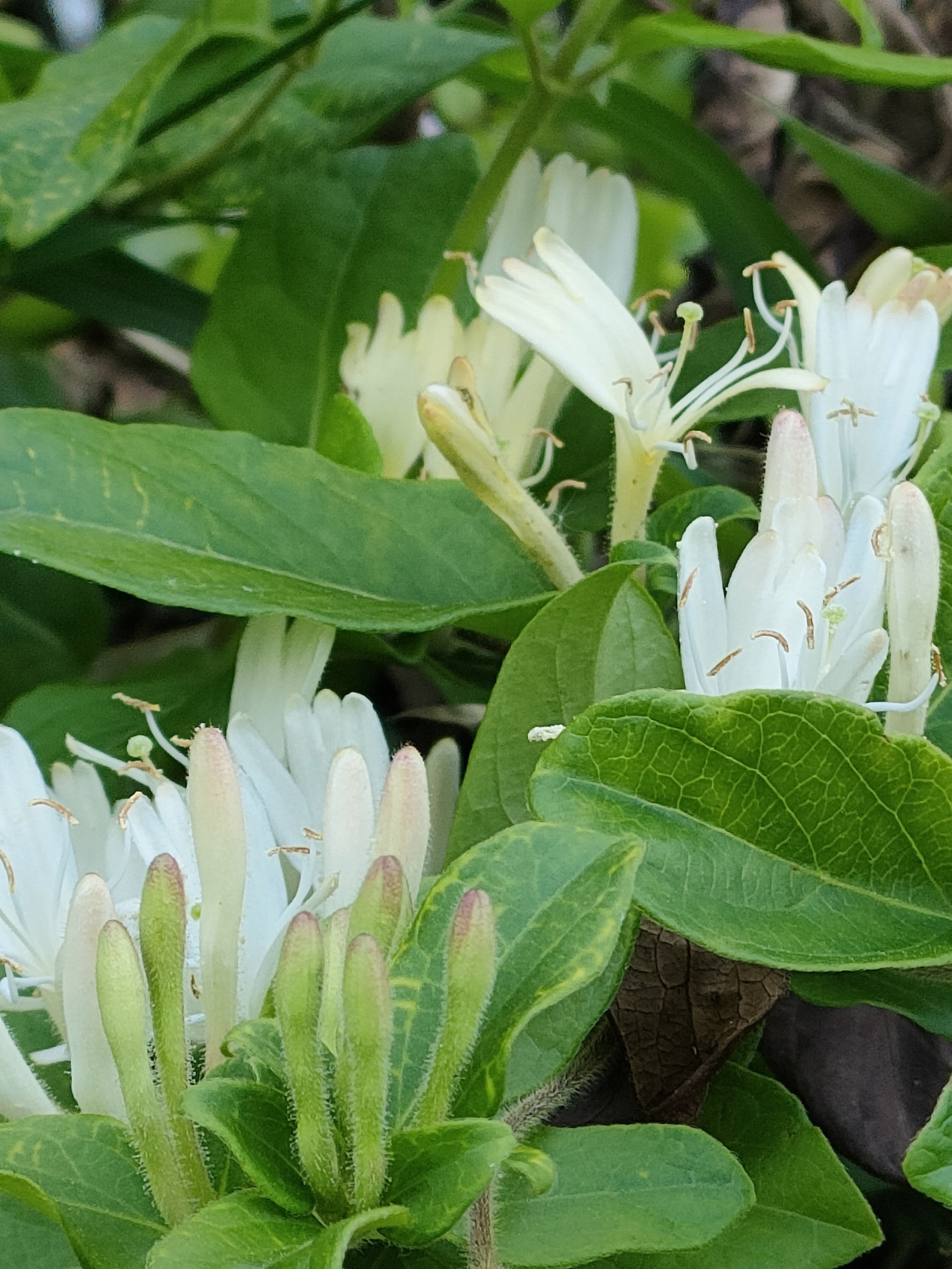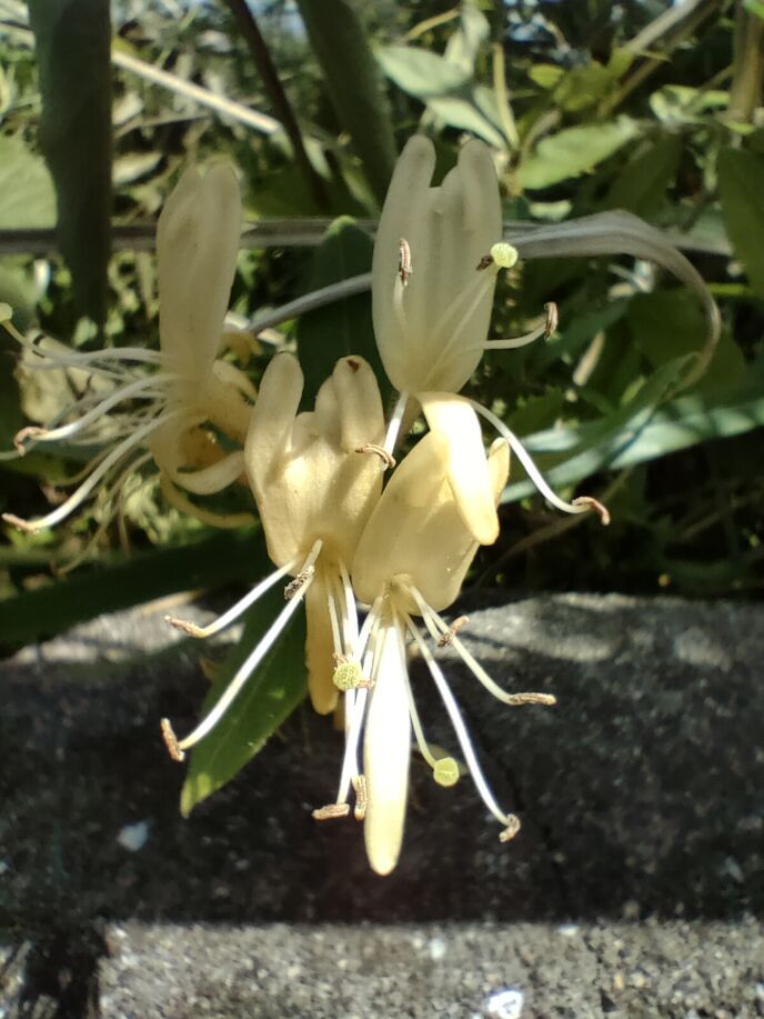 スイカズラで合っているだろうか……と思ったら、スイカズラは花の色が白から黄色に変わっていくことから「金銀花」とも呼ばれると書いてあり、「たしかにこの花だ!」となりました。世界に花は山ほどあるだろうに、Googleレンズさんの正確さはすごいですね。