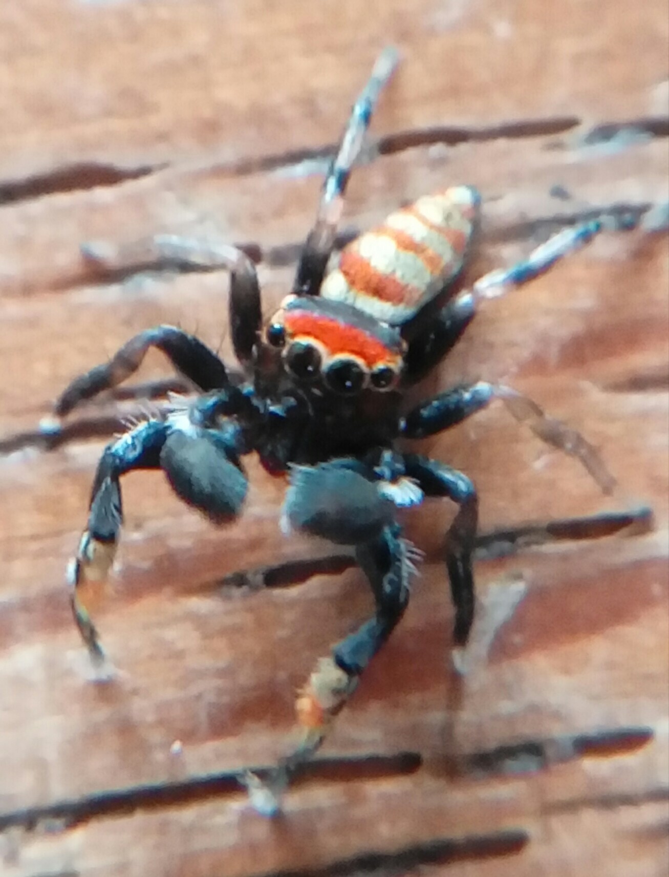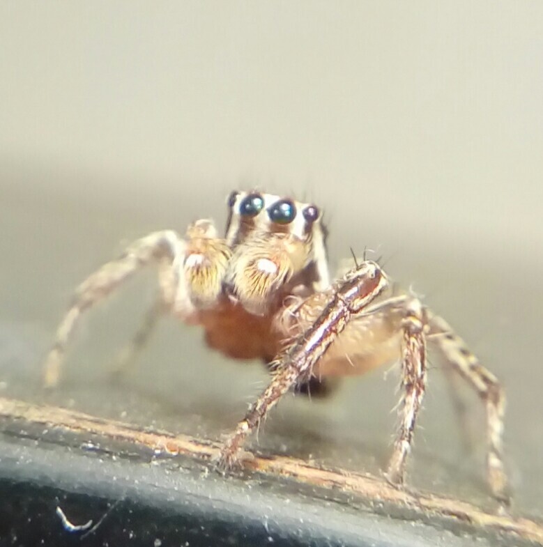 ハエトリグモのメスは茶色っぽく模様が目立たない(ものが多い)。一方、女王の模様はクッキリしているように見える。
