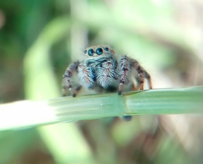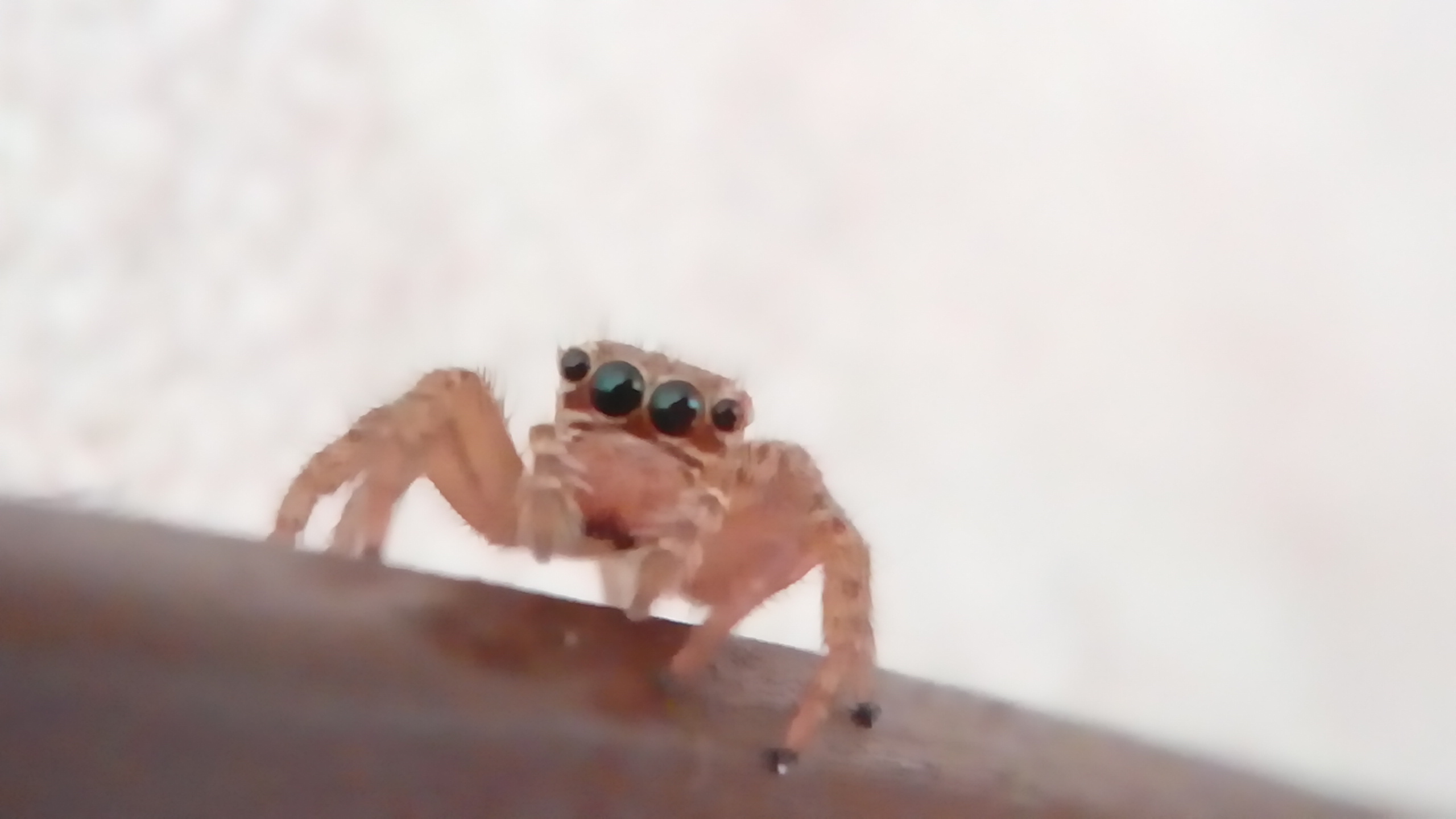 以前ハエトリグモとじっと見つめ合った、あのときの目は純粋で汚れがなく、キラキラと輝いていた。